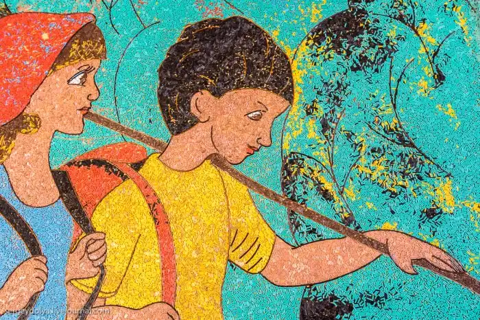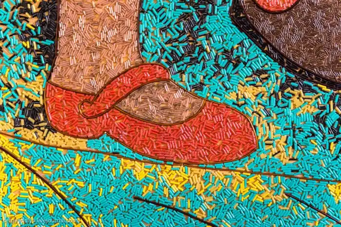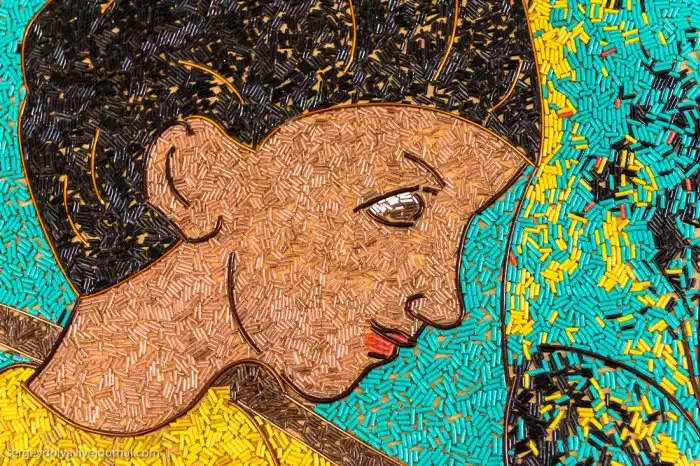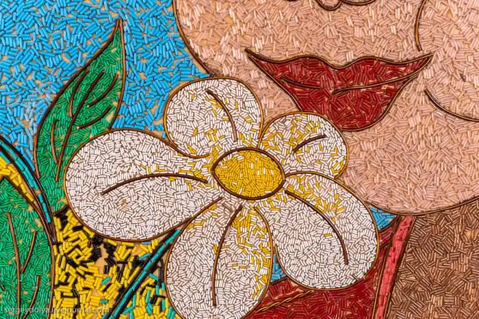 Вся картина сделана из мельчайших кусочков цветной проволоки: