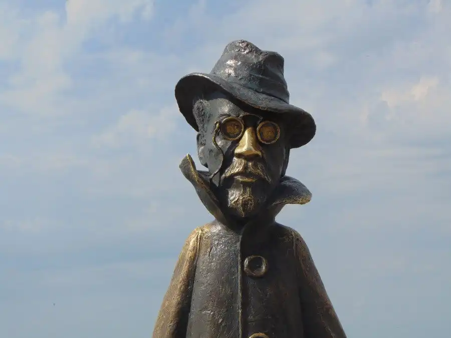 34. У томичей и туристов давно появилась традиция - проходя мимо Чехова потереть ему нос (на счастье) и сфотаться с ним) Поэтому нос у него уже золотой :D