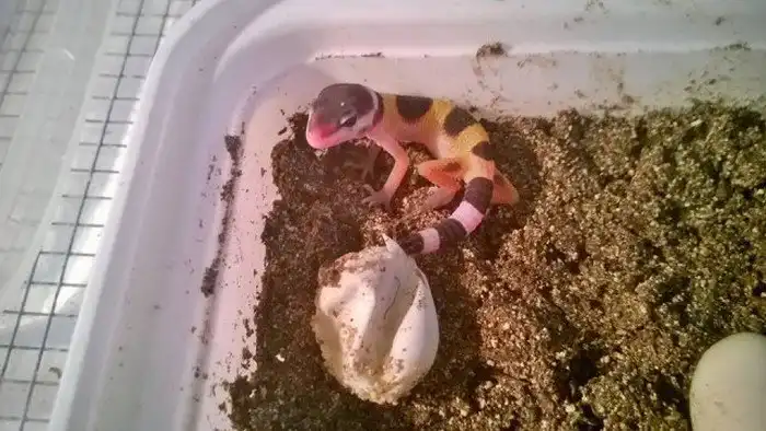 Перед вами ящерица геккон по кличке Хлоя, которая оказалась беременной. Вскоре после ее покупки в зоомагазине, она отложила два яйца в доме своего нового хозяина, который решил создать все условия для того, чтобы детеныши появились на свет и с интересом наблюдал за развитием эмбрионов, а потом и ростом вылупившихся малышей.