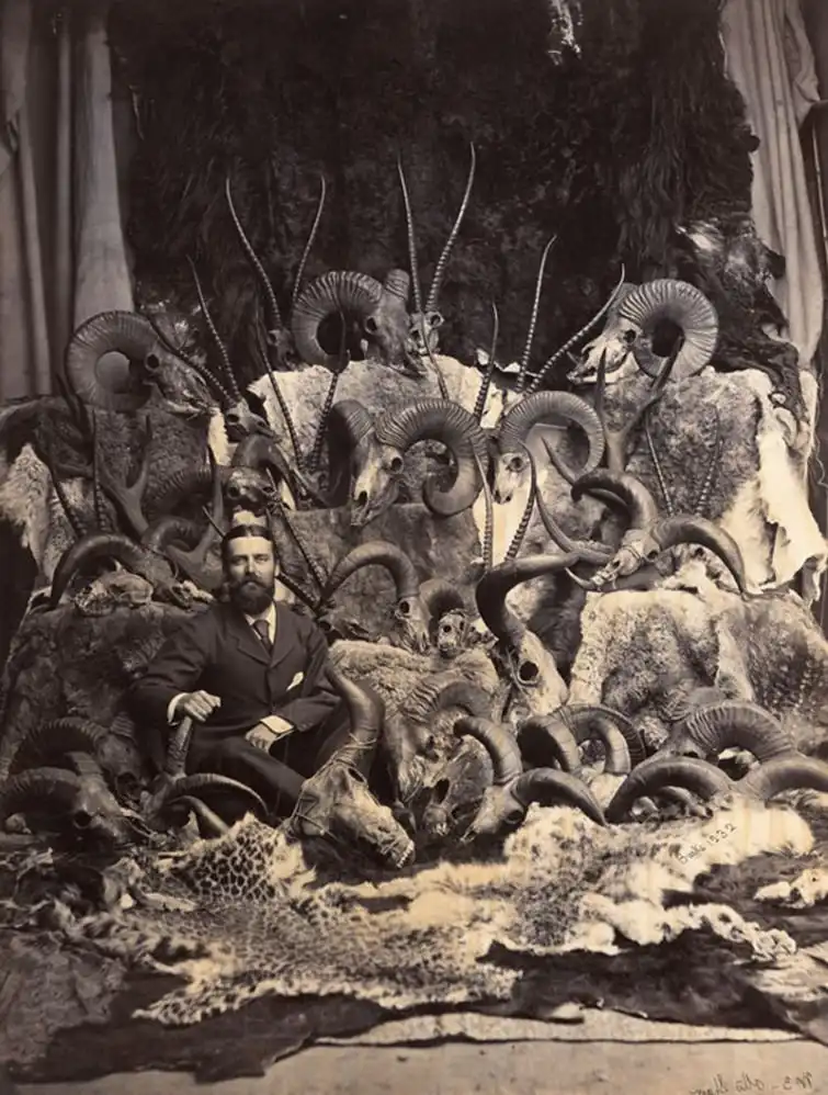 Английский охотник со своими трофеями. Индия, 1880-е годы