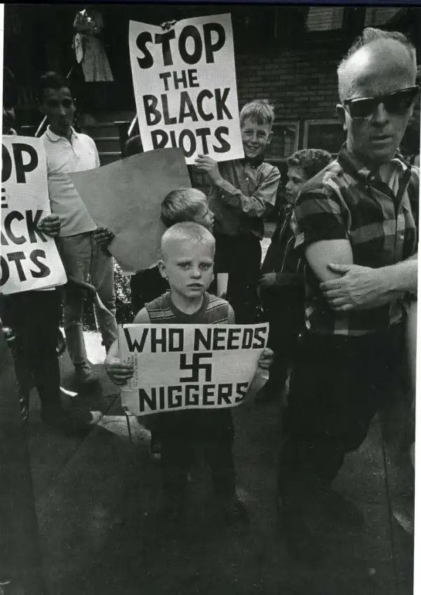 Мальчик с плакатом "Кому нужны ниггеры?". США, 1959 год