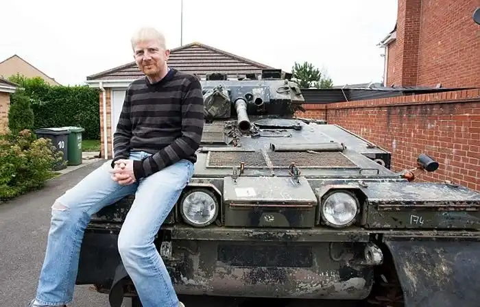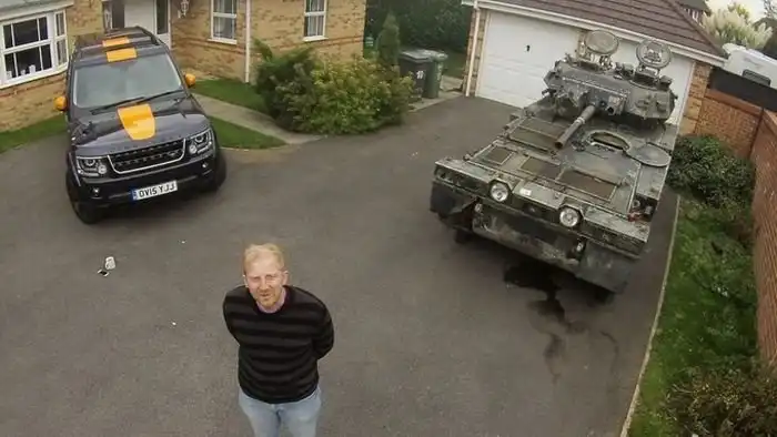 Как сообщает британской телеканал ITV, житель города Бристоль Джеф Вулмер просматривал лоты на популярном интернет-аукционе и спонтанно решил купить списанный легкий танк CVRT «Скорпион». Он сделал ставку в размере 9 000 фунтов стерлингов (13 900 долларов США) и вскоре забыл об этом. Спустя какое-то время 44-летнему мужчине позвонили и сообщили, что он выиграл данный лот, и спросили куда доставить бронетехнику. Джеф, инженер по профессии, сказал свой адрес и совершенно не подумал о том, что у него совершенно нет места для парковки танка. В спешке он переехал из 2-комнатной квартиры в частый дом, во дворе которого собирается заняться реставрацией танка. Джеф планирует не только разогнать 7-тонный танк до заявленной скорости 80 км/ч, но и привести в рабочее состояние его пушку.