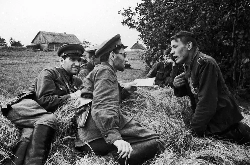 8. Советские офицеры допрашивают немецкого перебежчика.
