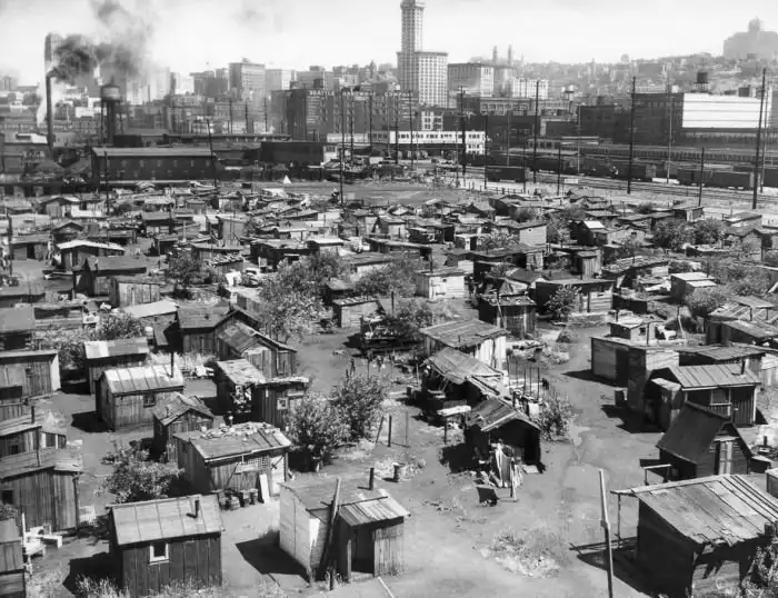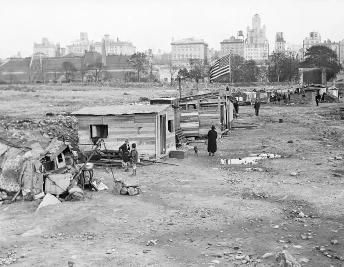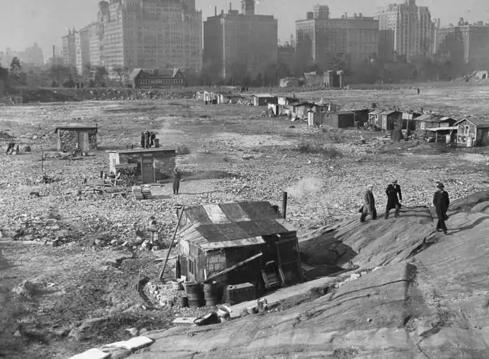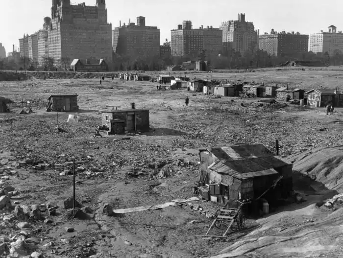 Когда-то свои трущобы были и в крупных городах США. Они стали появляться во время Великой депрессии 1929 – 1939 года, когда из-за безработицы огромное количество людей оказались за чертой бедности. Арендовать и тем более покупать хорошее жилье они могли, а потому стали строить свои собственные лачуги из дерева, металлолома и прочих материалов, которые им удавалось найти. Пустыри быстро превращались в небольшие деревни, их называли Гувервиллями (Hoovervilles) в честь президента Гувера. Гувервилль, который ждет вас далее, появился на территории центрального парка в Нью-Йорке и просуществовал там до начала 1940-х годов.