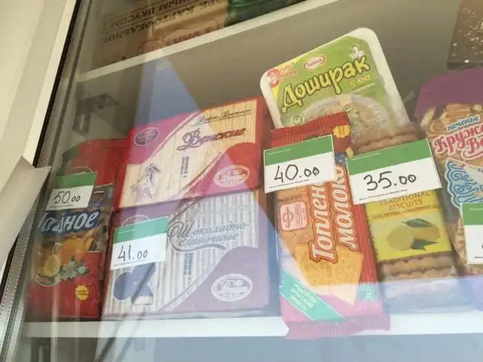 Вот такие вот передвижные киоски с российскими продуктами питания можно встретить на авиабазе в Сирии, где дислоцируются наши военнослужащие. Обратите внимание на цены.