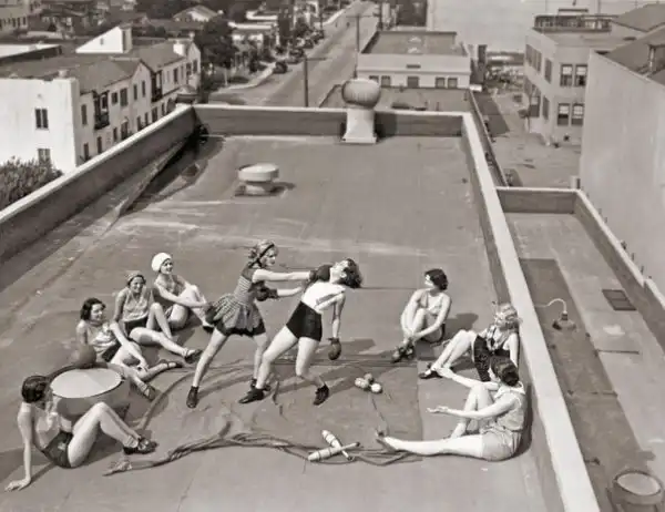 Женщины боксируют на крыше в Лос-Анджелесе, 1933г.