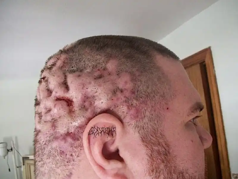 Я не знаток всяческих недугов, но подобную фигню на голове как-то встречал. Выглядит как целлюлит черепа - совсем неэстетично, то есть. Оказывается, от такого недоразумения можно избавиться, но для этого придется снимать скальп.
