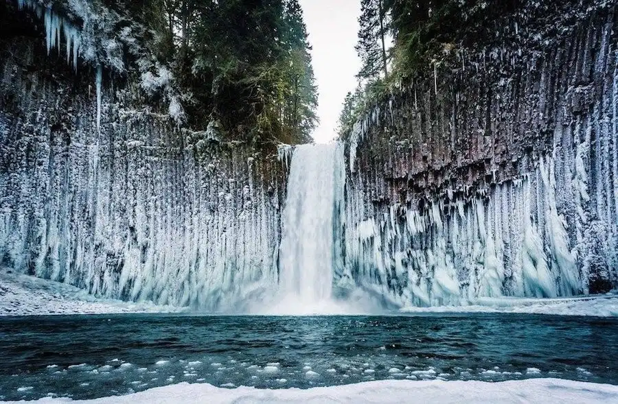 25. Замёрзший водопад в Орегоне, США.