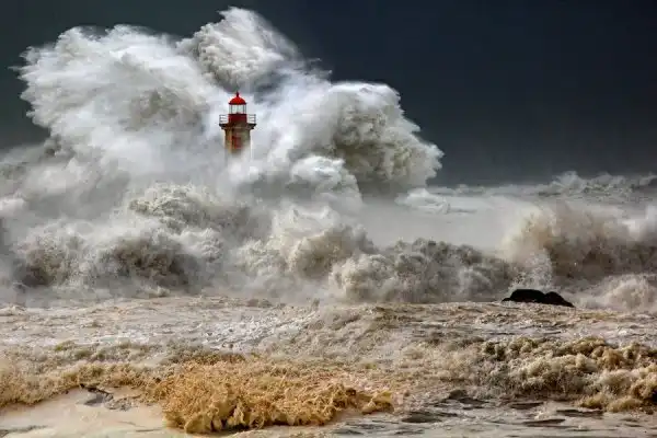 32. Маяк во время шторма.