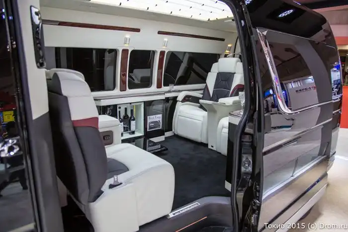 Особенно заметным среди них получился прототип Alphard Hercule, получивший массивную решетку радиатора, мягкую центральную секцию крыши и комфортабельный салон с диваном и деревянным полом. В заднем подлокотнике также установлен кулер и бокалы для шампанского.