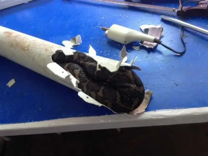 В Австралии питон, пытавшийся залезть в жилой дом, застрял в водосточной трубе, а для его спасения пришлось вызывать спасателей. Животное хотело развернуться в трубе и плотно застряло, поэтому часть трубы пришлось вырезать. В настоящий момент питон проходит 10-дневный курс реабилитации, по истечении которого его выпустят на волю.