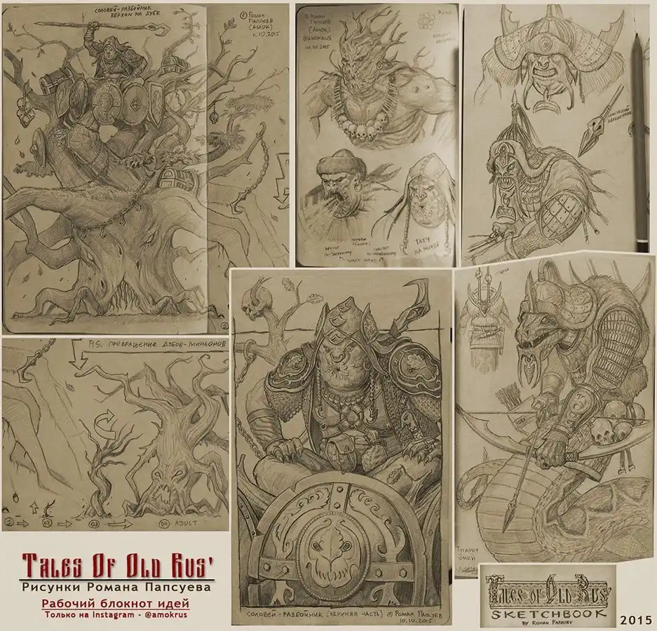 Художник Роман Папсуев запустил авторский проект Tales of Old Rus’, герои которого знакомы всем нам с детства. На первых трех скетчах изображены богатыри Алеша Попович и Илья Муромец, а также ведьма Баба Яга. Персонажи выглядят так, будто сбежали то ли из Dark Souls, то ли из The Elder Scrolls, что невероятно круто!