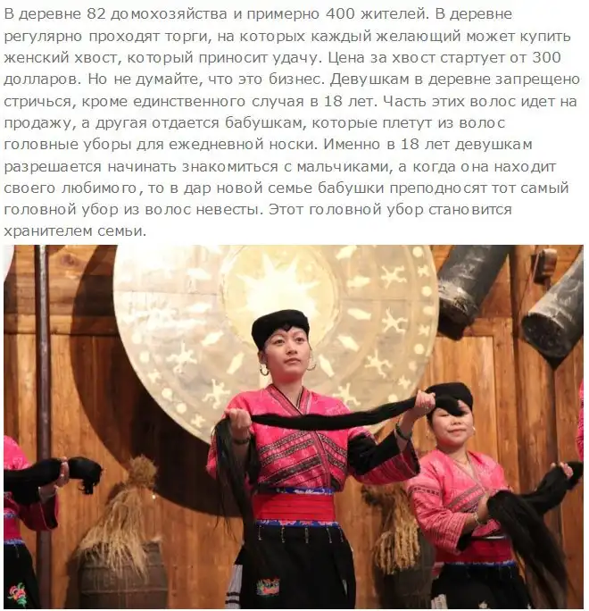 Китайская деревня с самыми длинноволосыми жительницами в мире