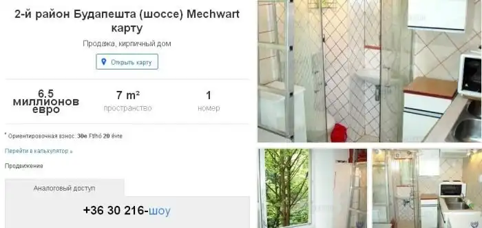 Недвижимость в Венгрии нынче дорога, но чтобы до такой степени… Недавно на просторах интернета было обнаружено объявление по продаже квартиры в Будапеште. Площадь квартиры всего 7 квадратных метров, а ее стоимость… 6,5 миллионов евро. Может это какая-то ошибка, но предлагаем взглянуть на то, что удалось уместить в квартире площадью с обычную кухню.