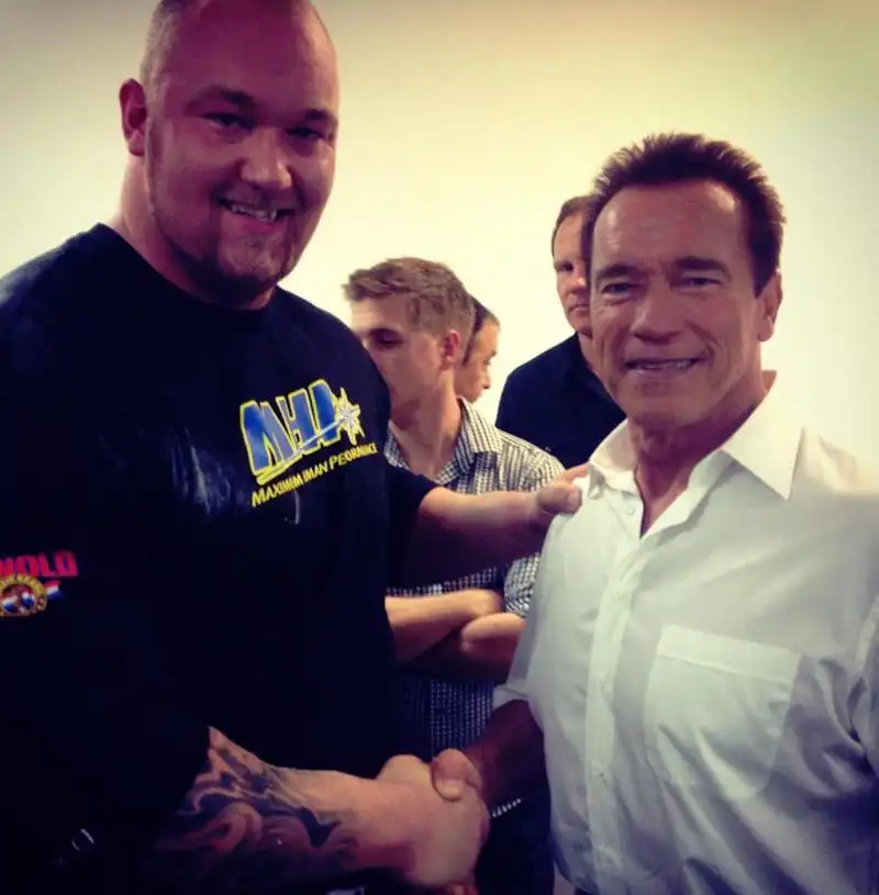 Говоря о действительно больших людях, нельзя не вспомнить знаменитого сира Грегора «Гора» Клигана из сериала «Игра престолов». Вот он рядом с «железным Арни».