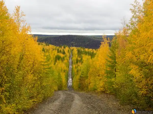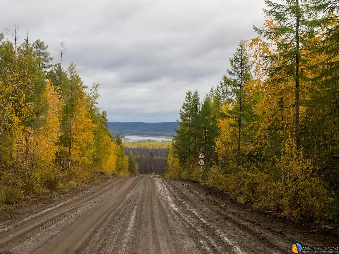 А вот это - "мирнинский хай-вей", вот такая дорога ведет от Чернышевского в Мирный, такие же отсыпные трассы ведут в Айхал и Удачный. По ним можно достаточно быстро передвигаться, отсев мелкий, не совсем привычная для нас гравийка.