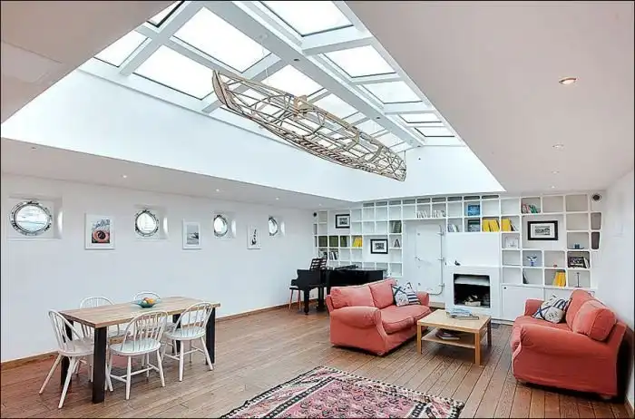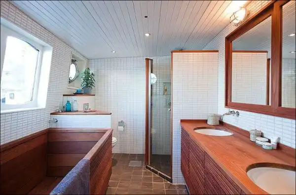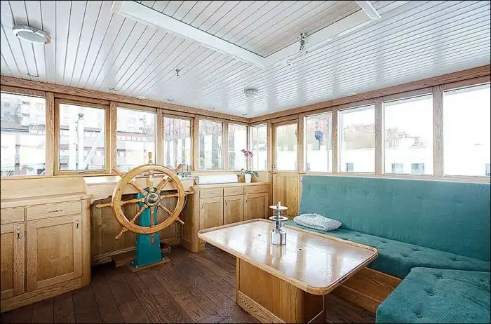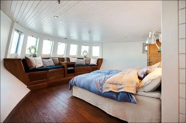 Судно было выкуплено и переделано в современный жилой дом с площадью в 150 квадратных метров.