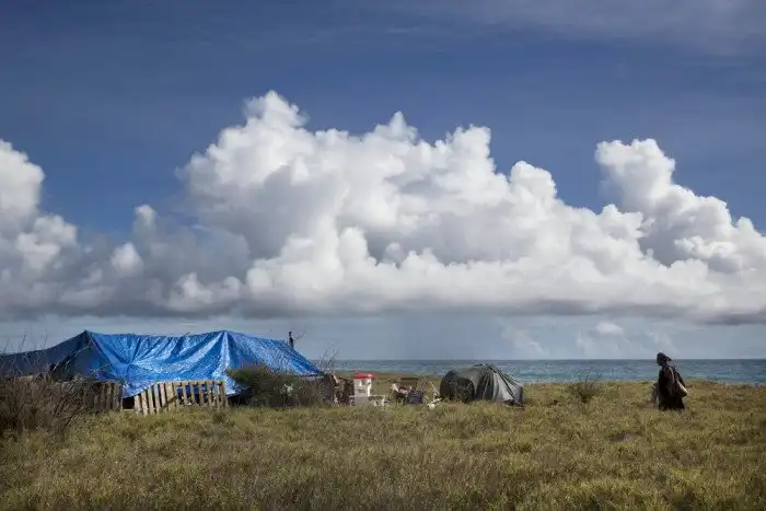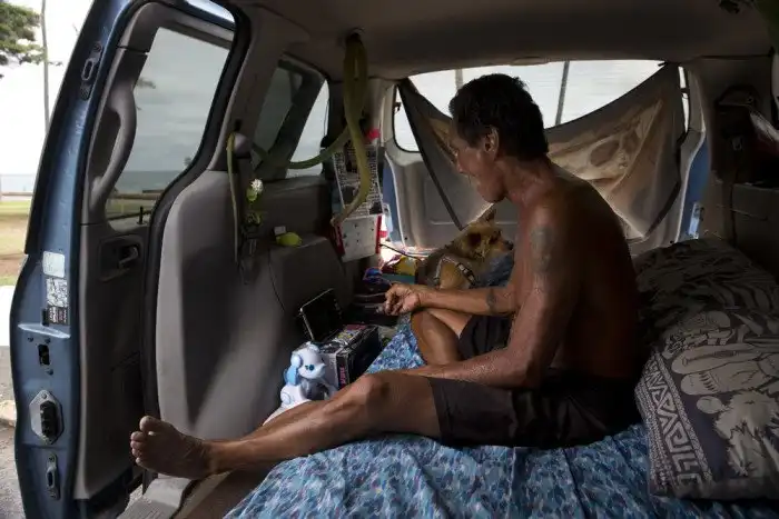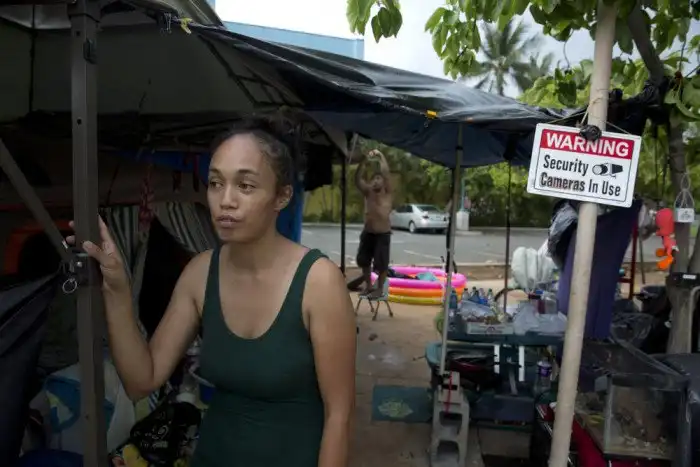 По количеству бездомных Гавайи опережают такие штаты США, как Невада и Нью-Йорк. Число людей без крыши над головой стремительно увеличивается в последнее время и сейчас на каждые 100 тысяч населения приходится 487 бездомных. Далее предлагаем вашему вниманию подборку снимков, которые расскажут о жизни этих несчастных людей на гавайских улицах, пляжах, в импровизированных лагерях и социальных приютах.