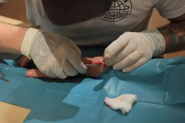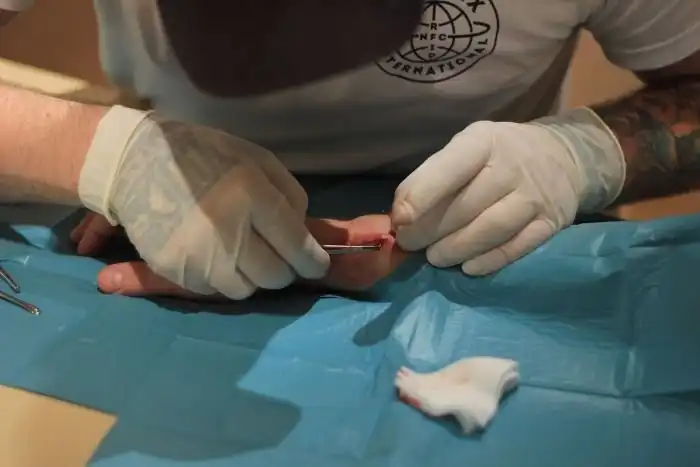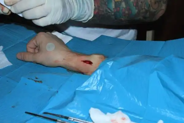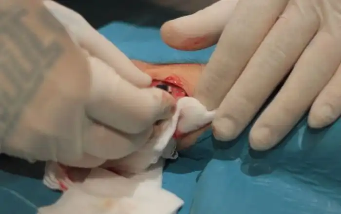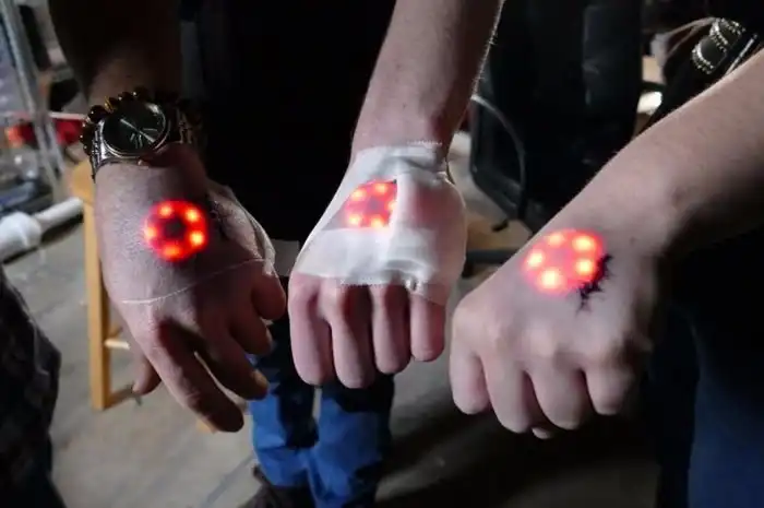 На проходившей в Дюссельдорфе первой киборг-ярмарке биохакеры из США и Германии вживили себе под кожу силиконовый имплантат со светодиодной подсветкой. Операция заняла 15 минут, а сам размер устройства сопоставим с размером обычной монеты. Светодиоды работают от батарейки и загораются в тот момент, когда рядом появляется магнит. Одной батарейки хватит на 10 000 срабатываний светодиодов, после чего ее придется заменить, проведя повторную операцию. Биохакеры планируют продавать новое устройство в тату-салонах, как оригинальное средство для подсветки татуировок. Вполне возможно, что новинка приживется среди модификаторов. Внимание, некоторые фото не для впечатлительных.