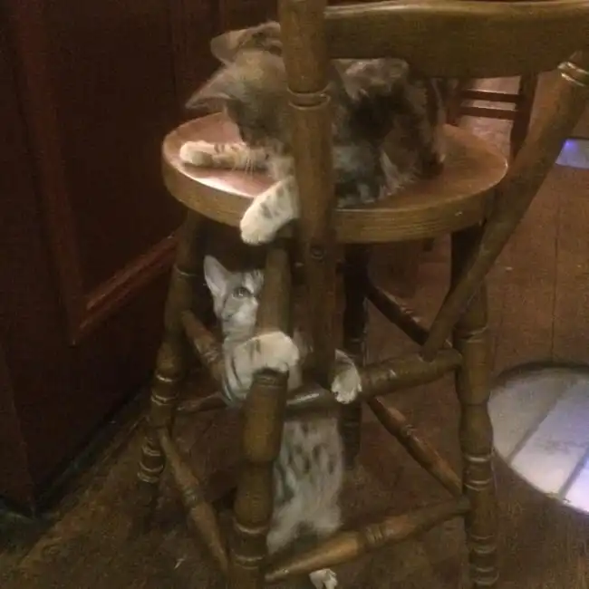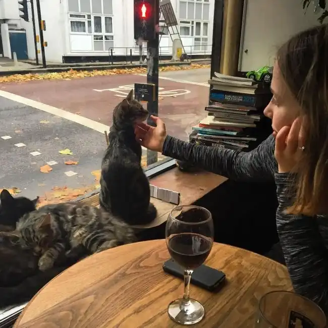 В британском городе Бристоль есть паб Bag o’Nails, изюминкой которого являются 15 кошек, считающие питейное заведение своим домом. Животные живут прямо в пабе, однако, если они устают от внимания людей, то могут отправиться на второй этаж, куда клиентам вход закрыт. Посетителям нравится пить в компании кошек, при этом они играют с ними и гладят их. Раньше в заведении было 24 кошки, но этого оказалось слишком много, и 44-летний владелец паба Люк Дэниелс отдал 9 кошек в добрые руки. Многие клиенты рады компании пушистых «собутыльников», а жалуются на них только те, кто страдает аллергией на кошачью шерсть.