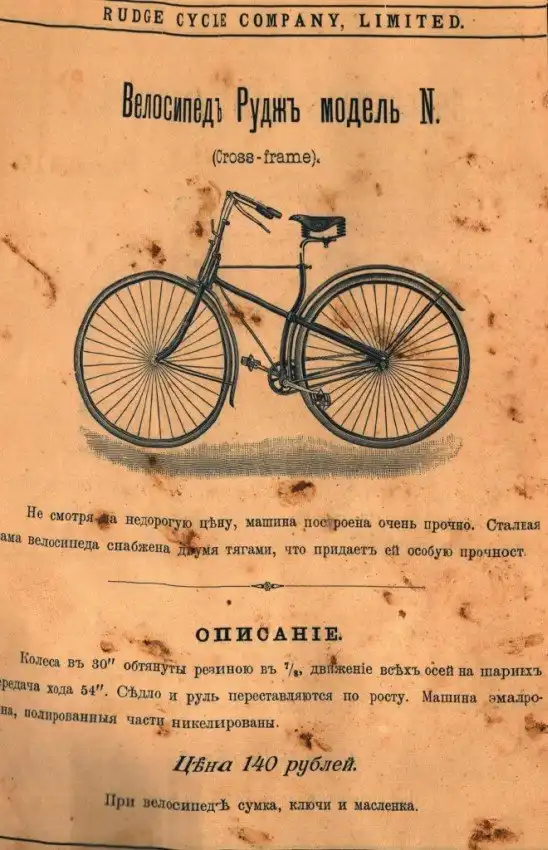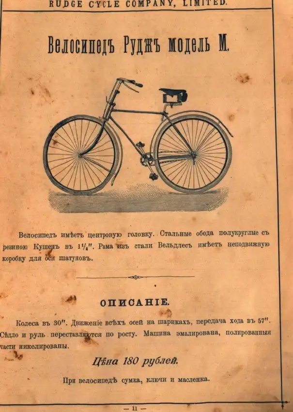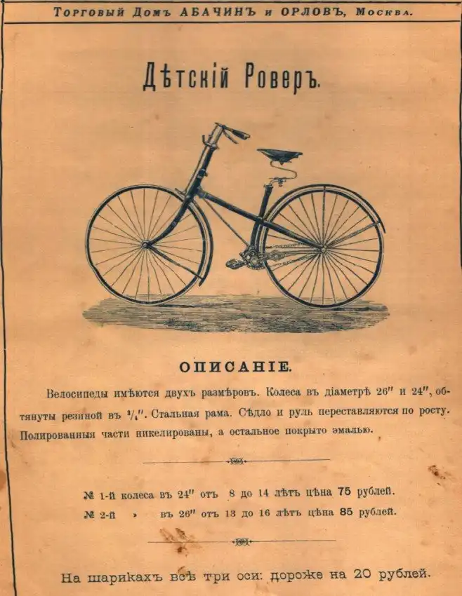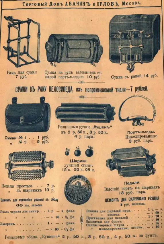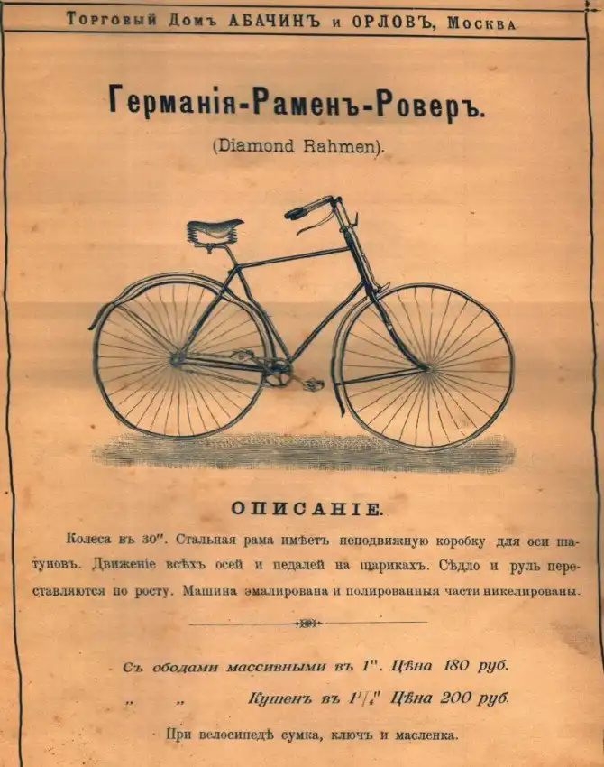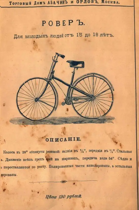 Представляем вашему вниманию довольно интересный каталог велосипедов и аксессуаров к ним, которые в конце XIX века можно было купить в России в «Торговом доме Абачина и Орлова». Велосипеды британской марки Rudge Coventry покупались через выписку из каталога, а их стоимость могла составлять половину годового заработка типичного представителя среднего класса того времени.