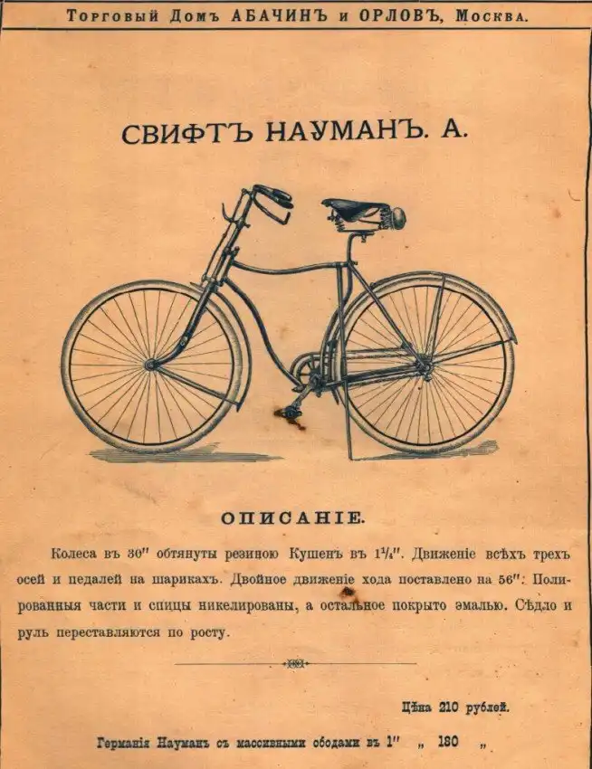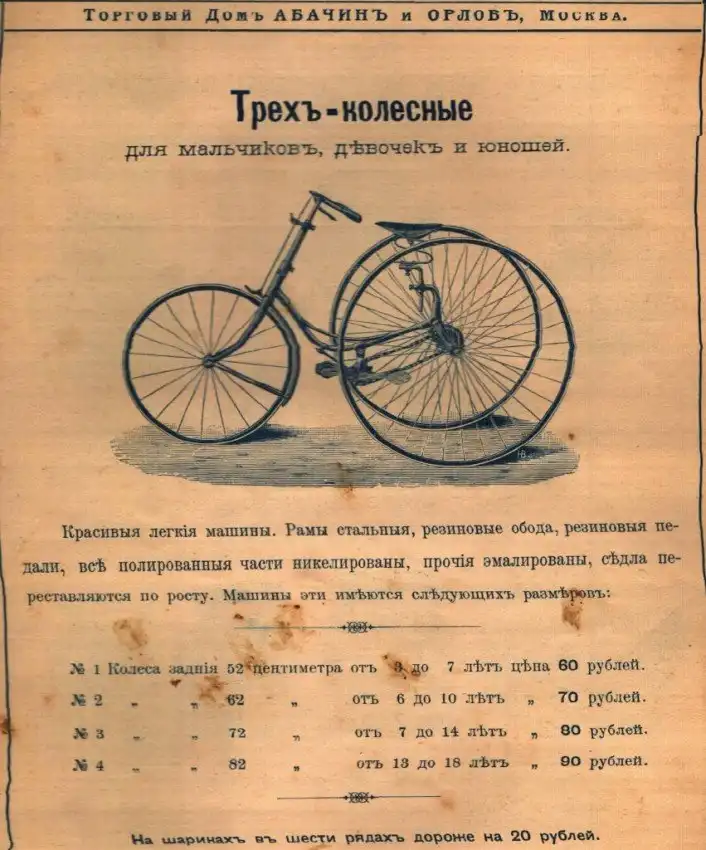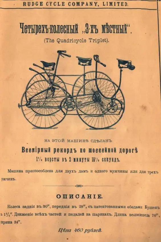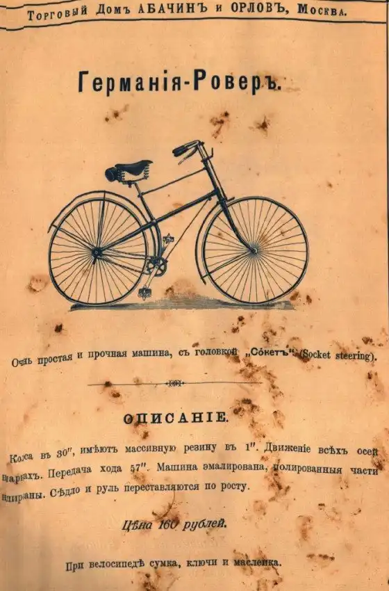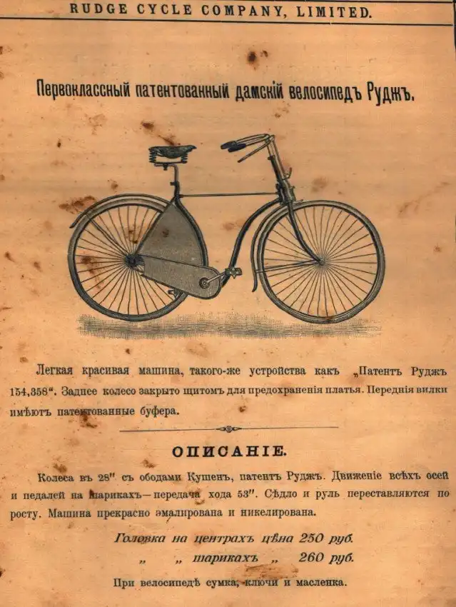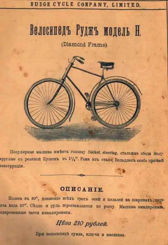 Представляем вашему вниманию довольно интересный каталог велосипедов и аксессуаров к ним, которые в конце XIX века можно было купить в России в «Торговом доме Абачина и Орлова». Велосипеды британской марки Rudge Coventry покупались через выписку из каталога, а их стоимость могла составлять половину годового заработка типичного представителя среднего класса того времени.