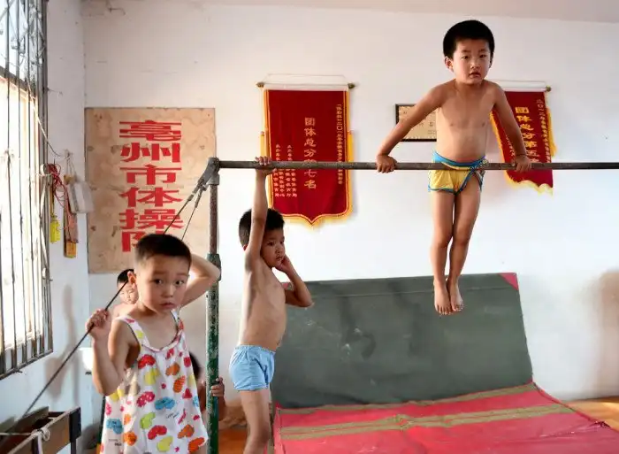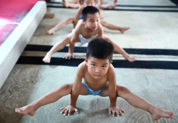 Эти кадры сделаны в детском летнем гимнастическом лагере в городском округе Бочжоу, провинция Аньхой, где малыши не просто отдыхают, но еще и улучшают свою физическую форму. Благодаря ежедневным занятиям дети повышают гибкость своих тел, учатся выполнять некоторые акробатические элементы, тренируют силу и воспитывают силу духа.