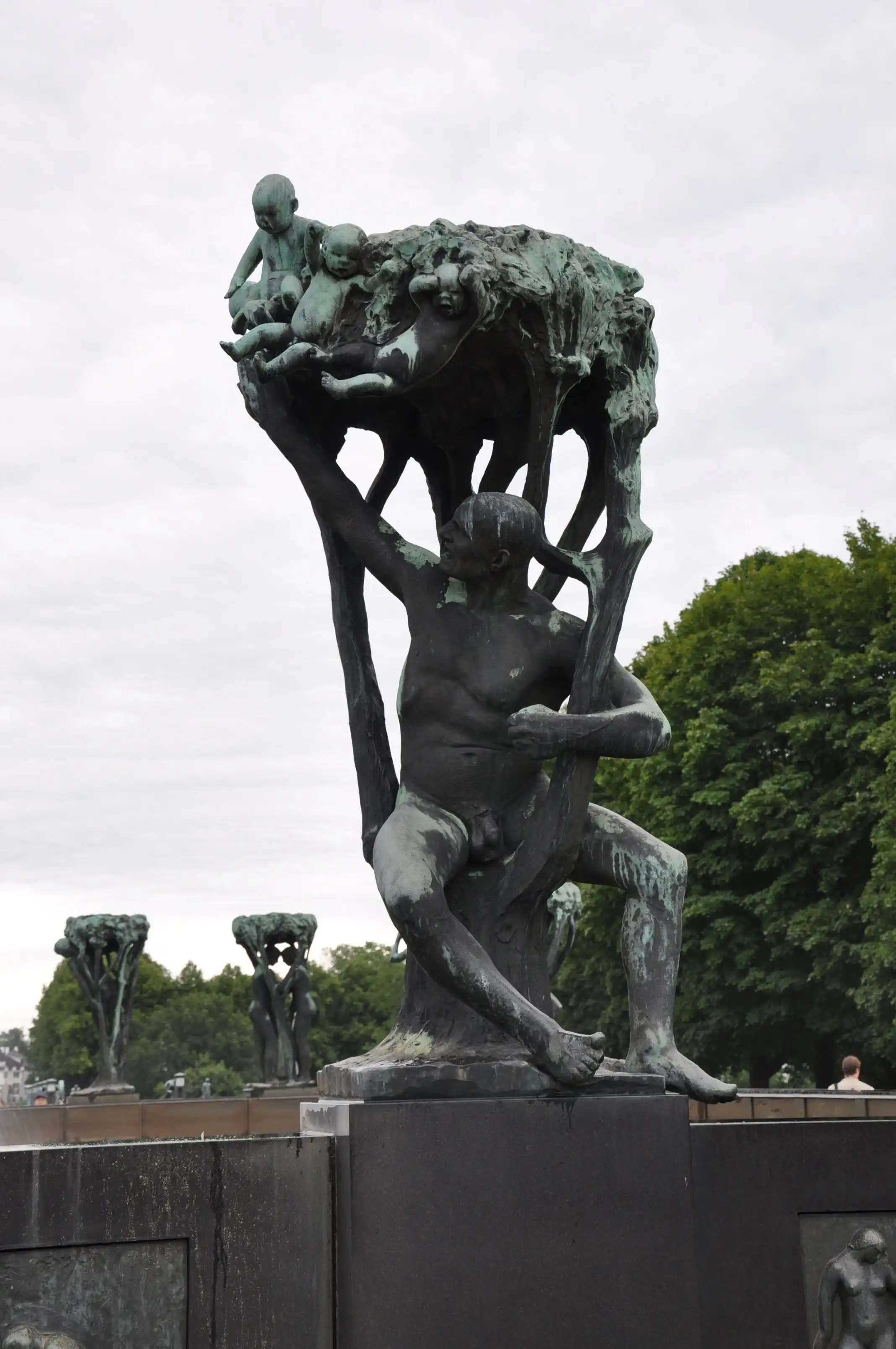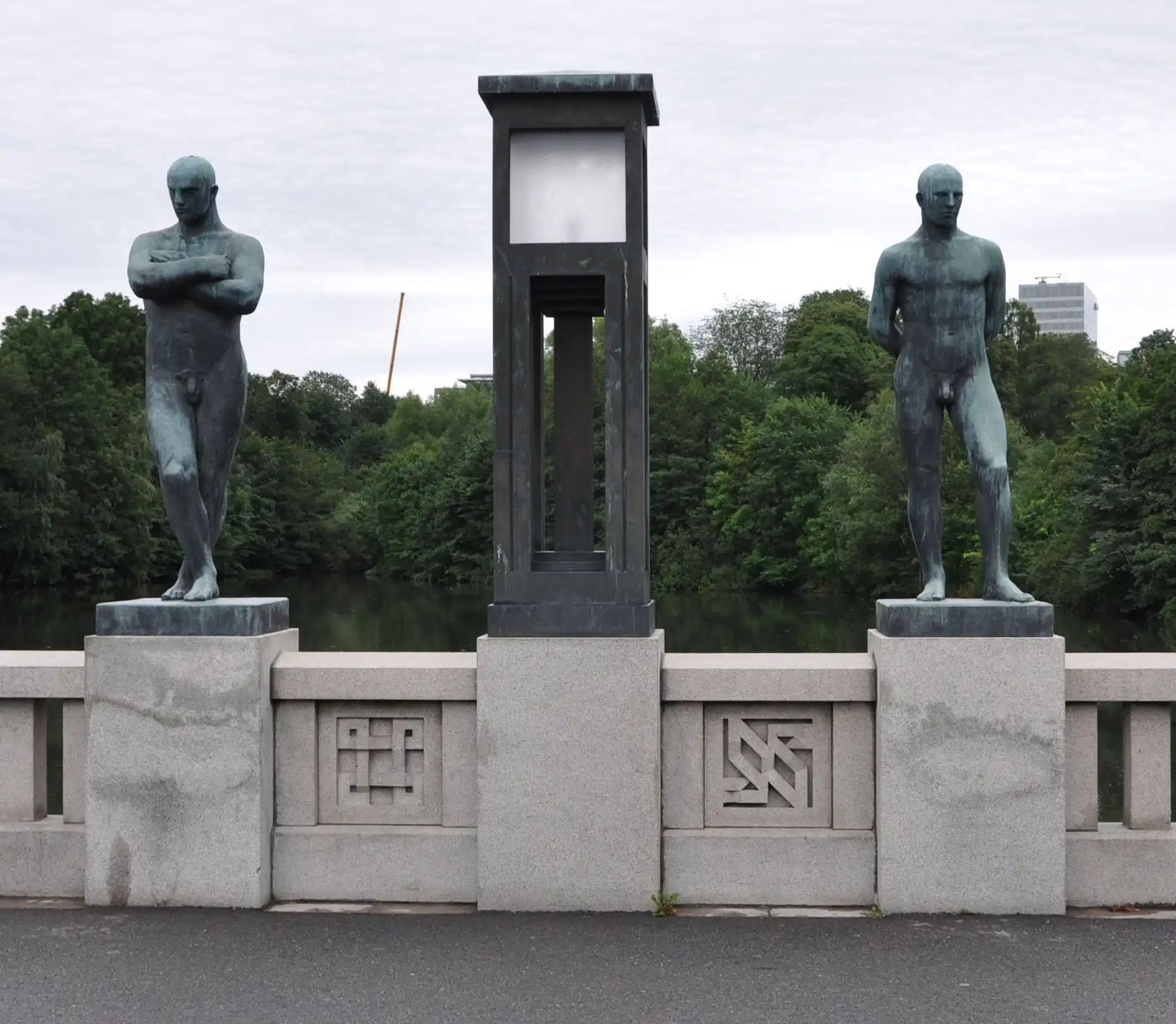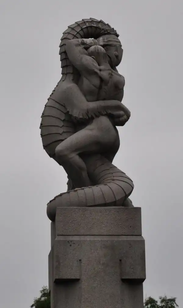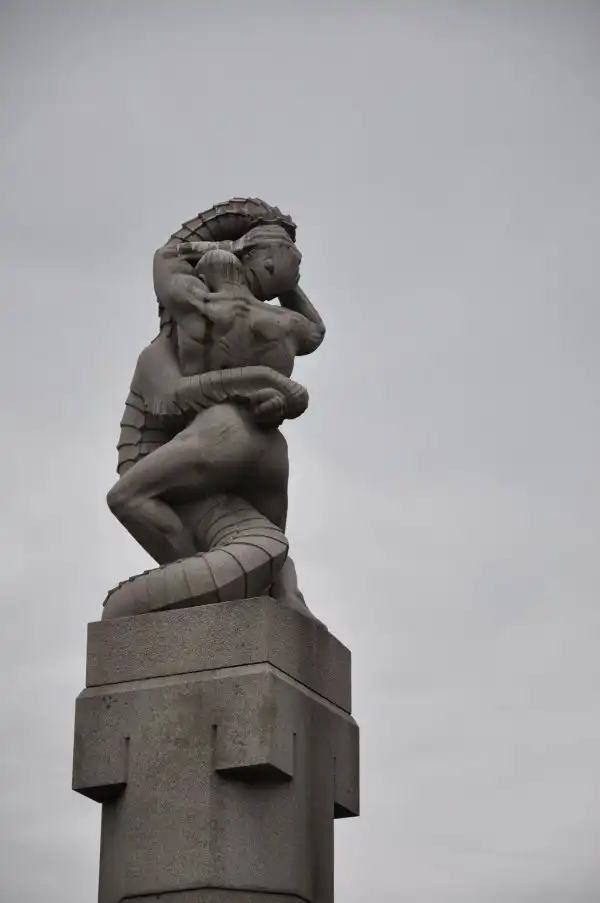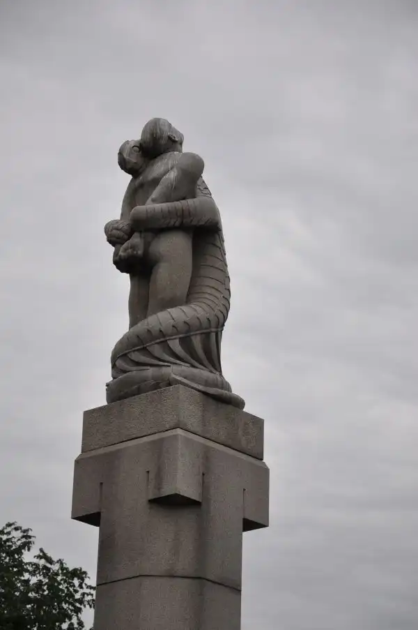 Надо отметить, что скульптуры парка можно отнести к редкому типу – типу нацистского искусства. По слухам, Вигеланд был любимым скульптором Гитлера. В скульптурах чувствуется влияние модерна в его строгом, нордическом проявлении. Посмотрите фотографии из парка сами – от колонн, изображающих человеческие страсти до скульптур – всё нордическо-монументальное.