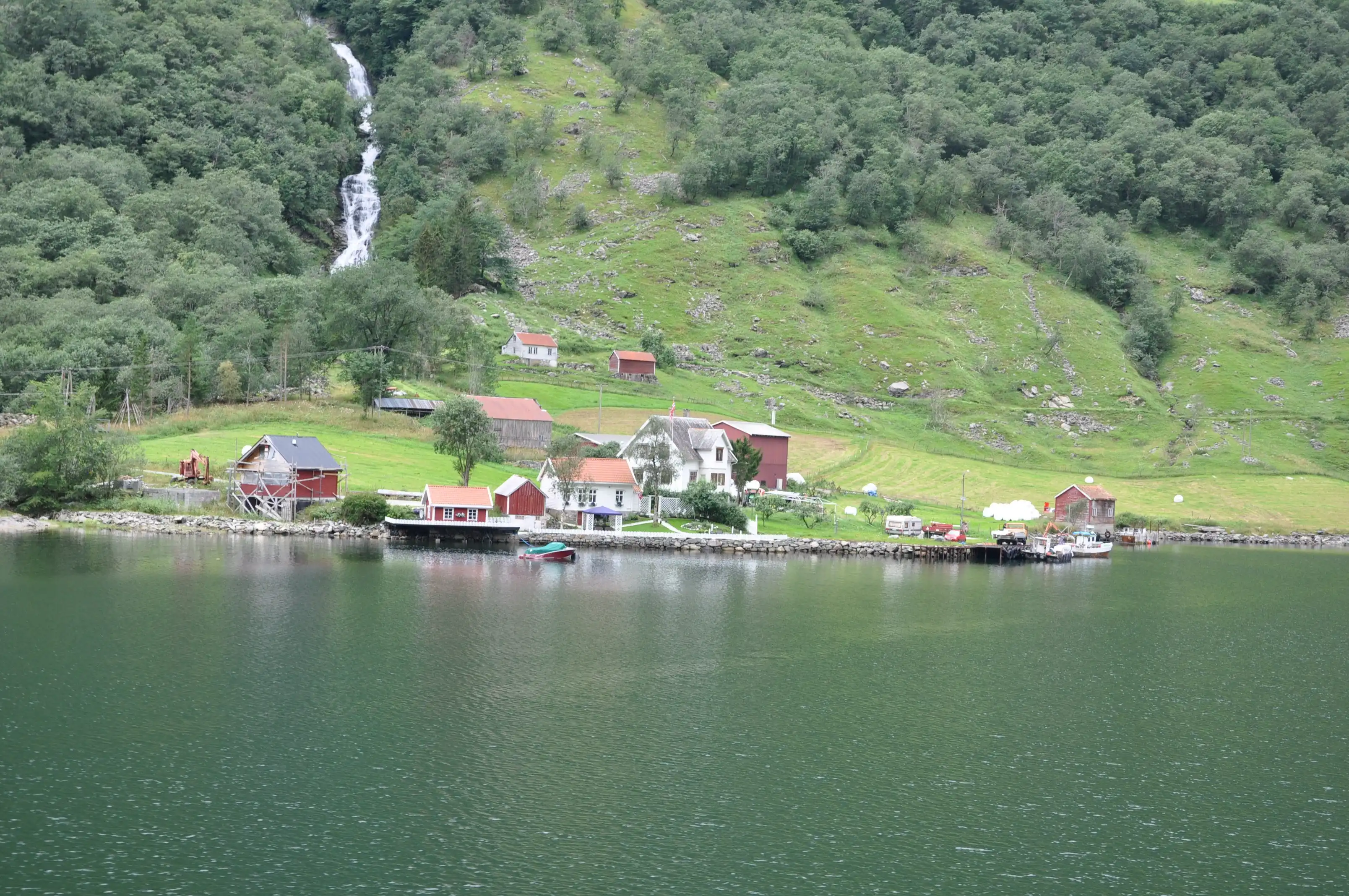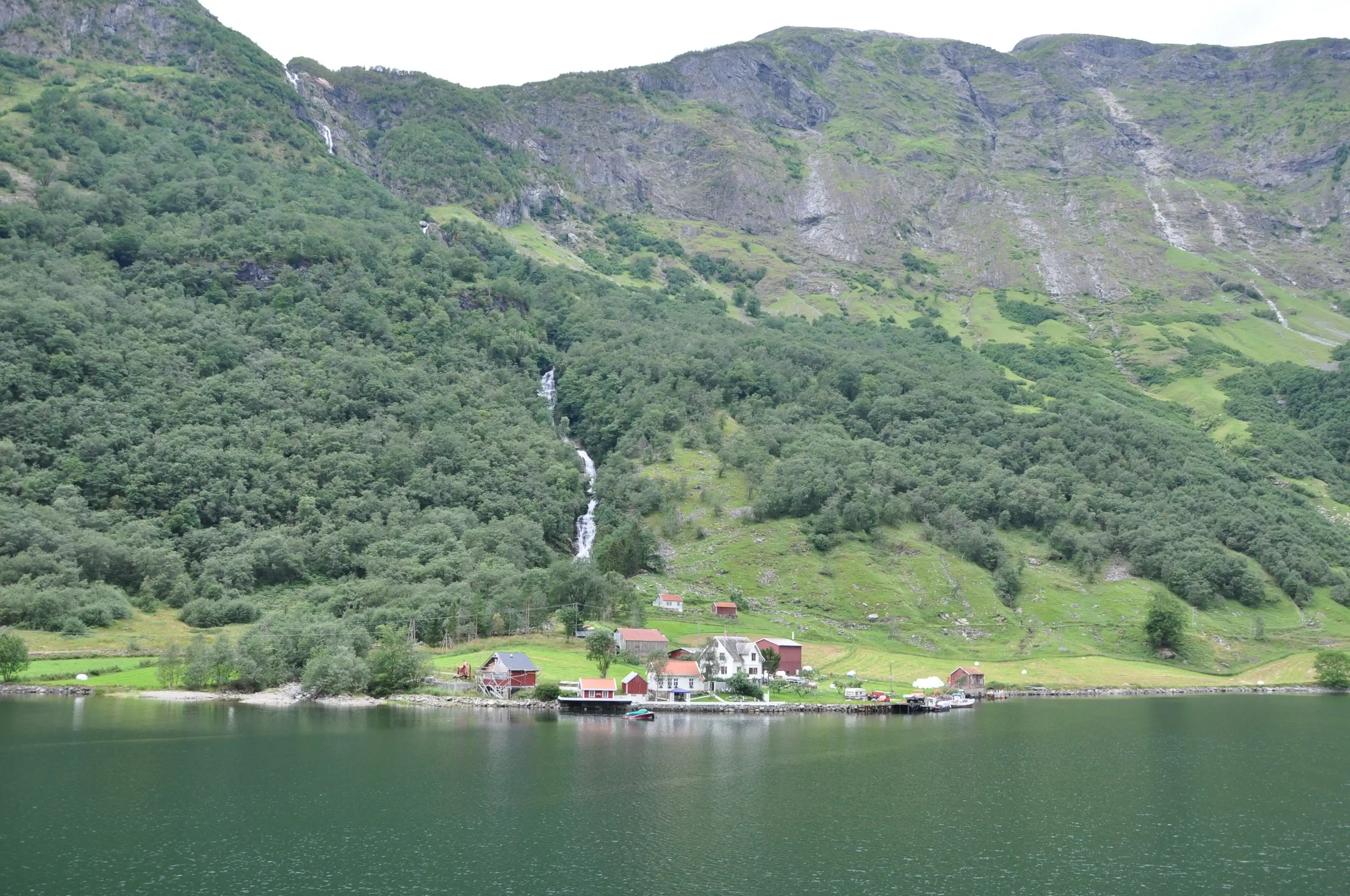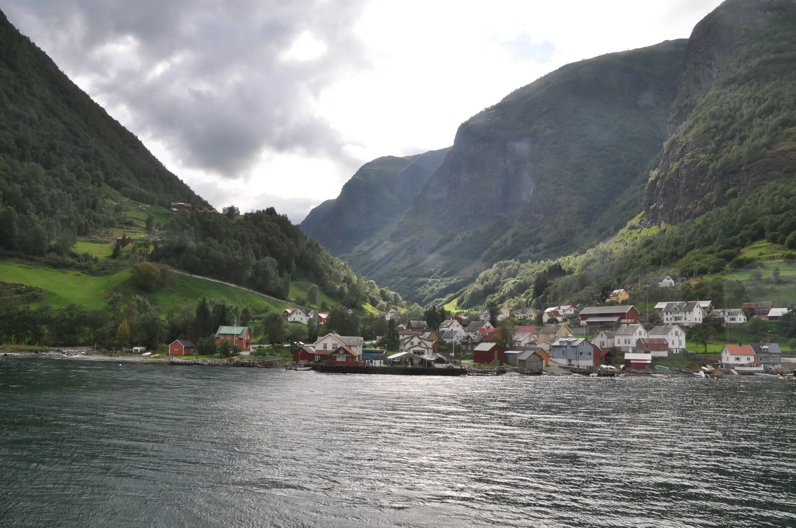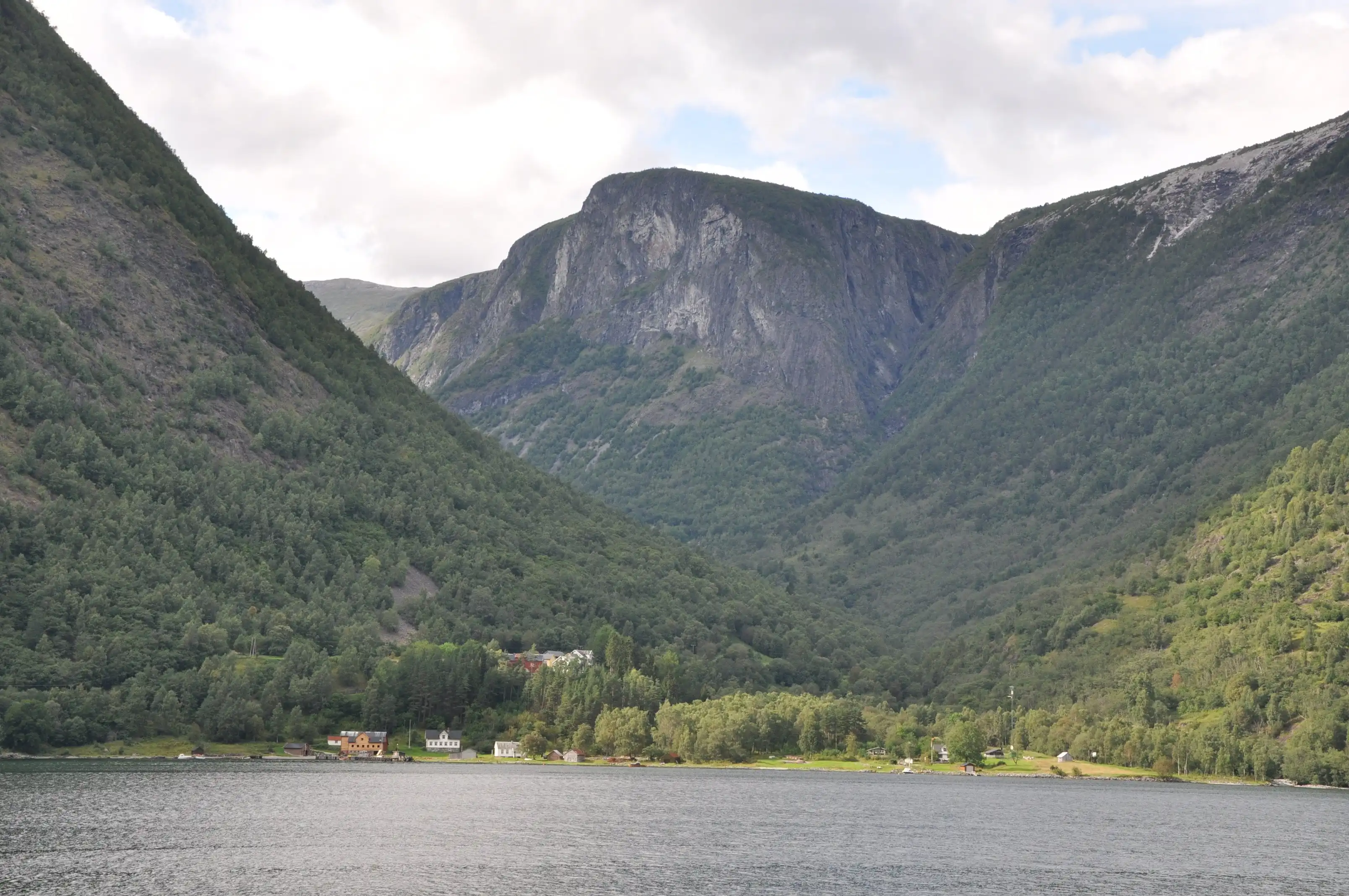 Вот типичная деревушка у самого конца фьорда. Здесь и ставили викинги свои дома для зимовок по возвращении из морских походов….