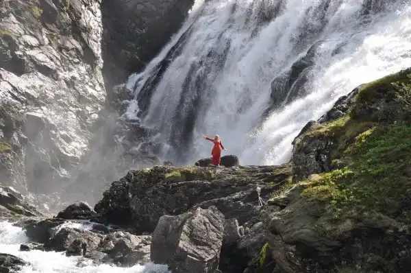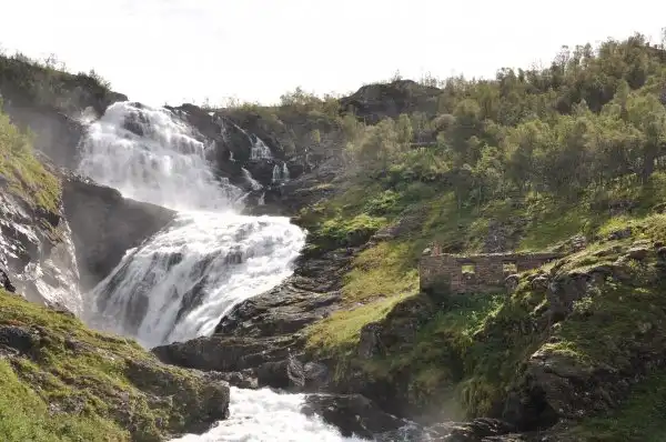 В конце путешествия – снова водопад с маленьким сувенирным магазинчиком рядом и природа… хоть она и не так красиво получилась на моих фотографиях, в отличие от красивых фотографий норвежских фотографов в начале поста…