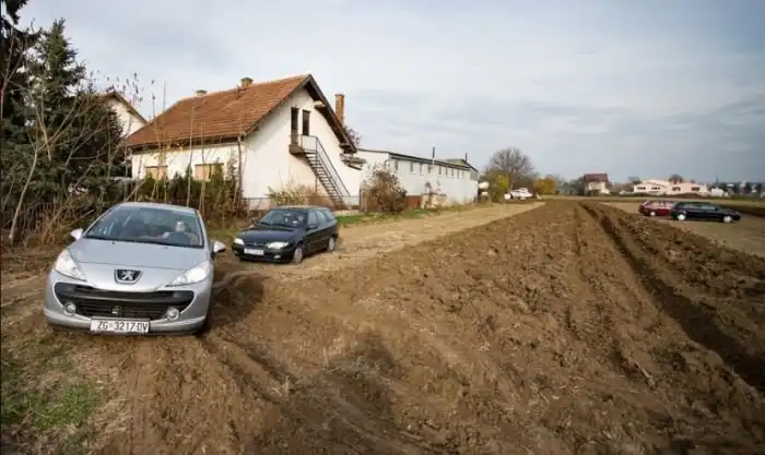 Хорватский фермер распахал землю на самовольной стоянке, заблокировав около 50 машин