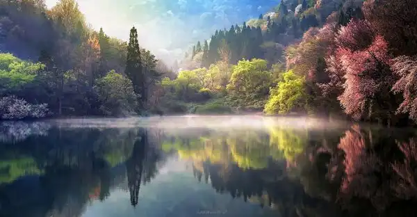Зеркальные отражения пейзажей в озерах и реках Южной Кореи