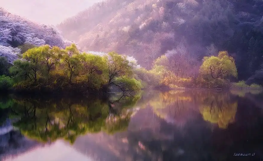 Чжэвун Ю, фотограф-пейзажист из Сеула, умеет запечатлеть завораживающую красоту природы, отражающуюся на водной глади. Фотограф находит такие ракурсы, при которых его работы выглядят просто сказочно.