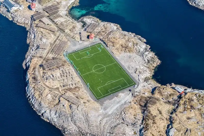 24. Футбольное поле на Лофотенских островах, Норвегия. За северным полярным кругом.
