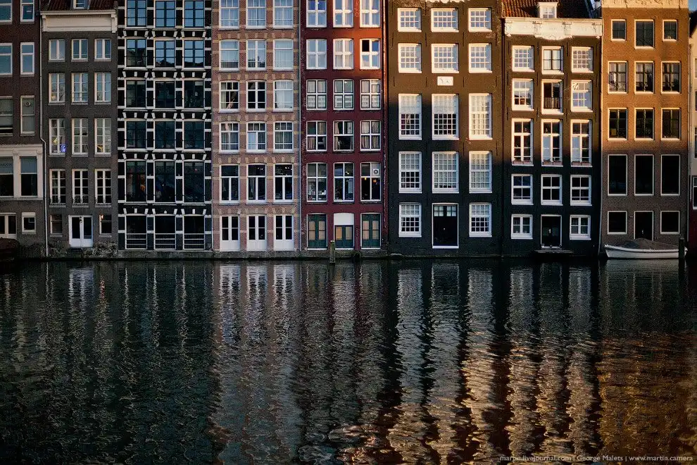 Такие узкие дома в Амстердаме возникли исторически из-за старого налога на площадь. Дело в том, что плата взималась из рассвета длины фасада здания. Поэтому дома строили узкие на сторону улицы, но длинные внутрь.