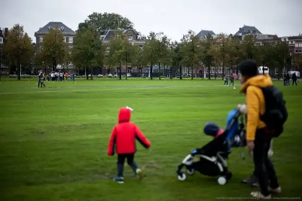 Погода в Голландии вообще меняется очень стремительно, при этом прогноз крайне точный. Если написано, что с 11 до 13 часов будет солнце, а потом пойдет дождь — так и случится, практически минута в минуту. Но дождь жителей Амстердама совершенно не пугает, люди продолжают гулять и ездить на велосипедах.
