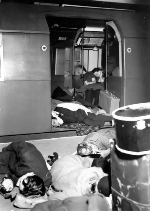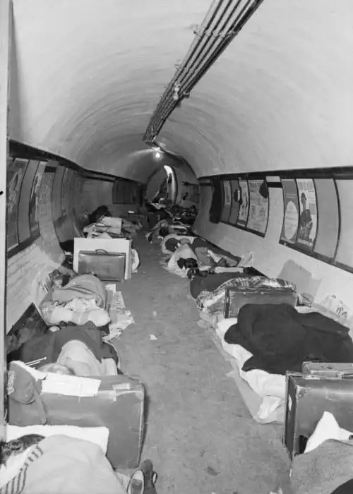 С сентября 1940 года по май 1941 года немецкая авиация регулярно бомбила Лондон и другие крупные британские города. Авиаудары наносились в основном ночью, а потому спать в своих домах было небезопасно. Люди ночевали в метро и через время станции метрополитена стали похожи на настоящие подземные города. Мест не хватало, а потому спали везде, где только могли лечь, в том числе и на эскалаторах. Далее предлагаем взглянуть на подземную жизнь жителей Лондона годы Второй мировой войны.