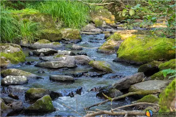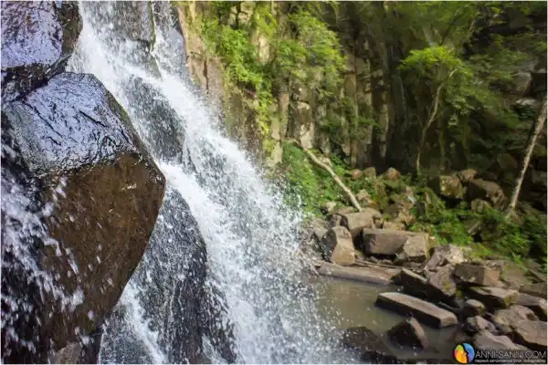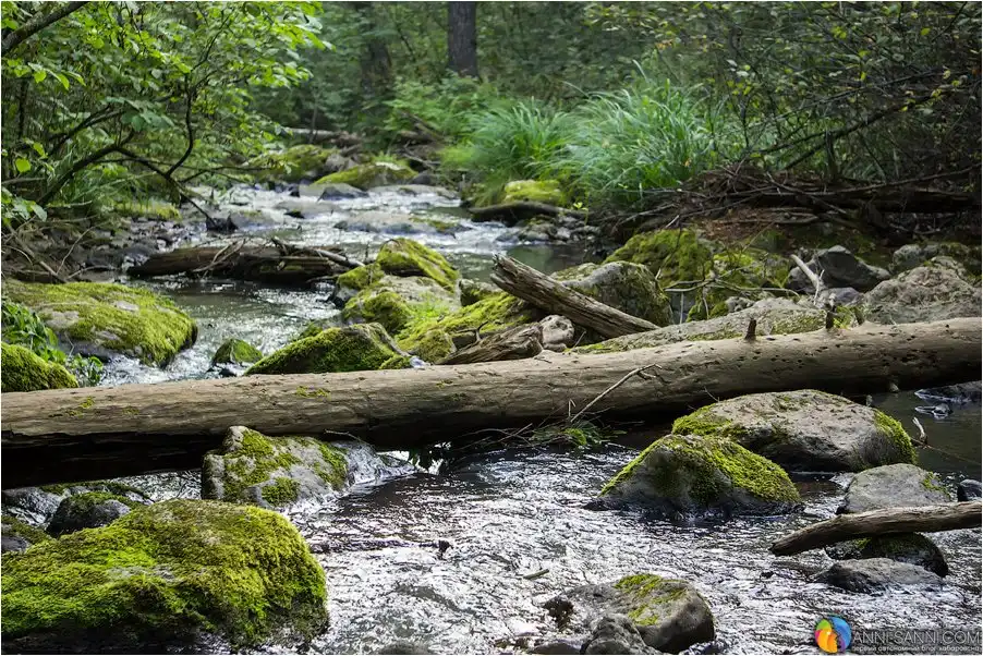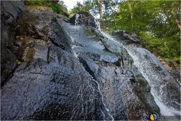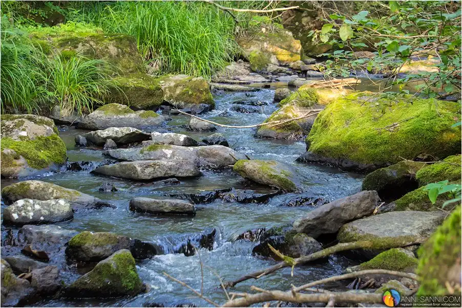 Помимо самого водопада, в котором нужно еще обязательно искупаться, если не боишься холоднющей воды, можно полюбоваться классическими видами лесных ручьев, дикими цветами и - увы, разозлиться от следов человека - мусора там немного, не каждый бандерлог доедет до этих мест. Но вот множество ленточек на деревьях у "парковки" неподалеку у ручья, хоть и являются непропустимым ориентиром для туристов, выглядят все же неряшливо.