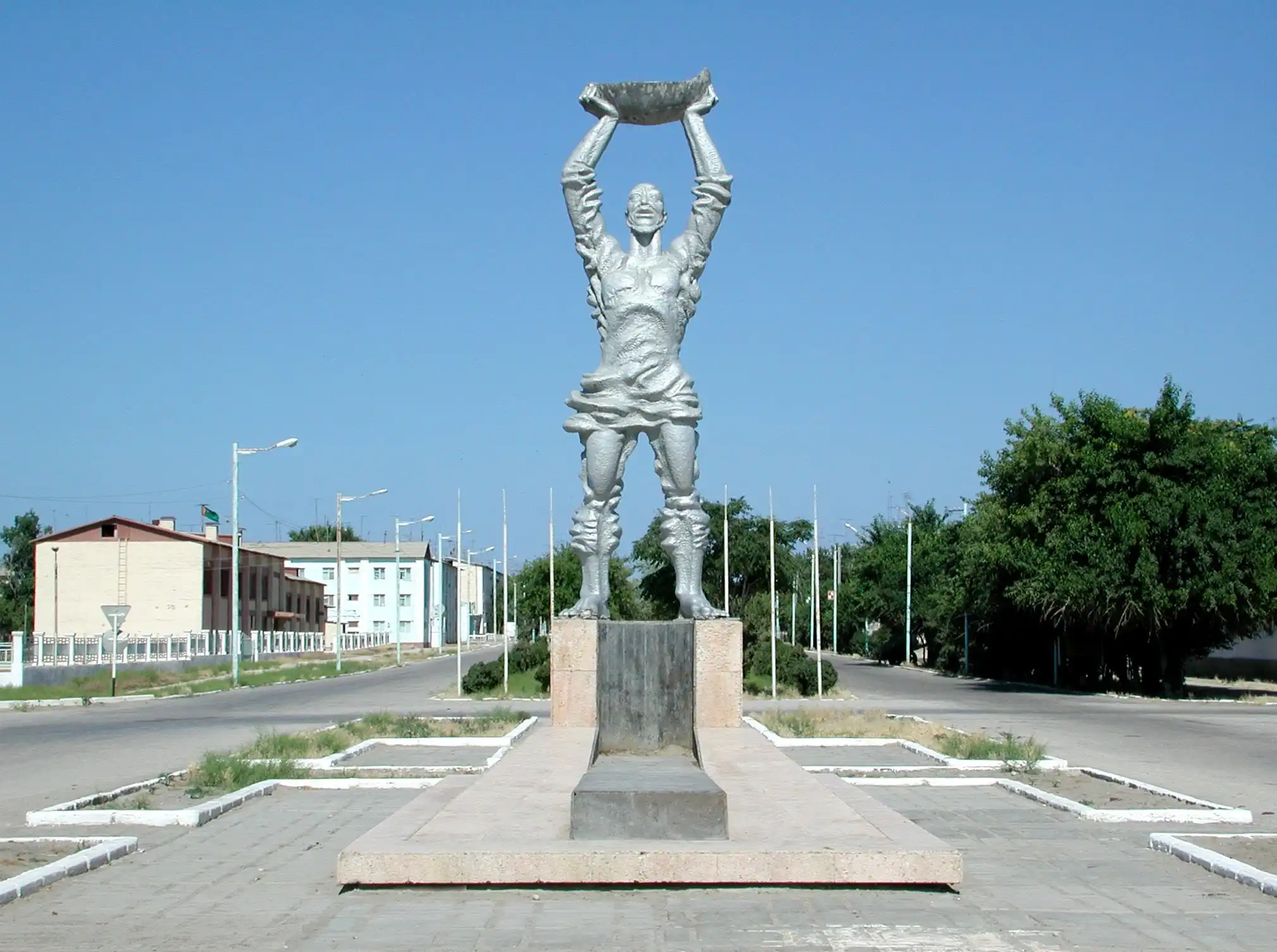 Однако, город живёт. Раньше, правда, был и кинотеатр, но после независимости его закрыли. На фото ниже – абстрактный памятник матери-Родине с гулей мира. Стоит до сих пор.