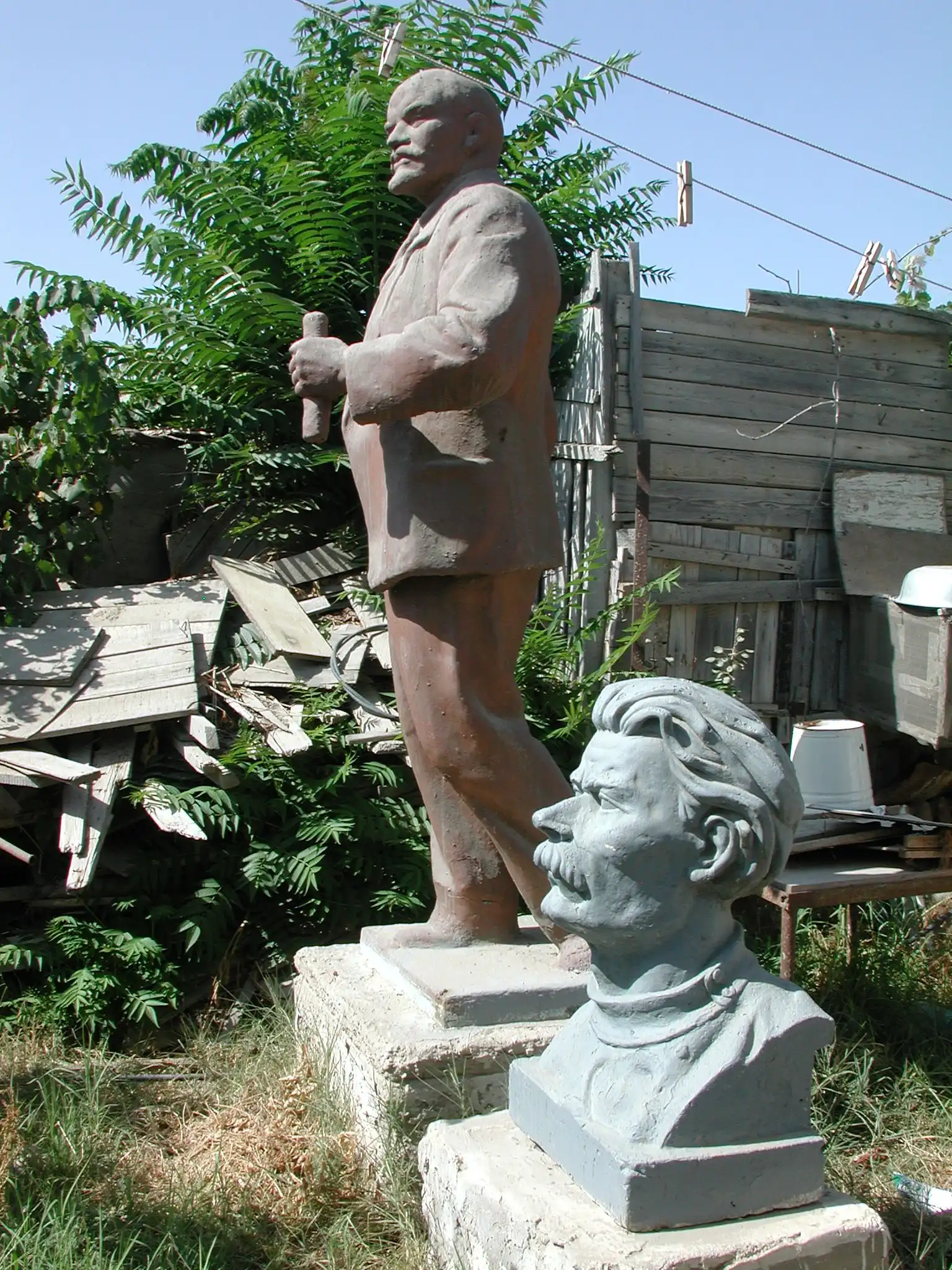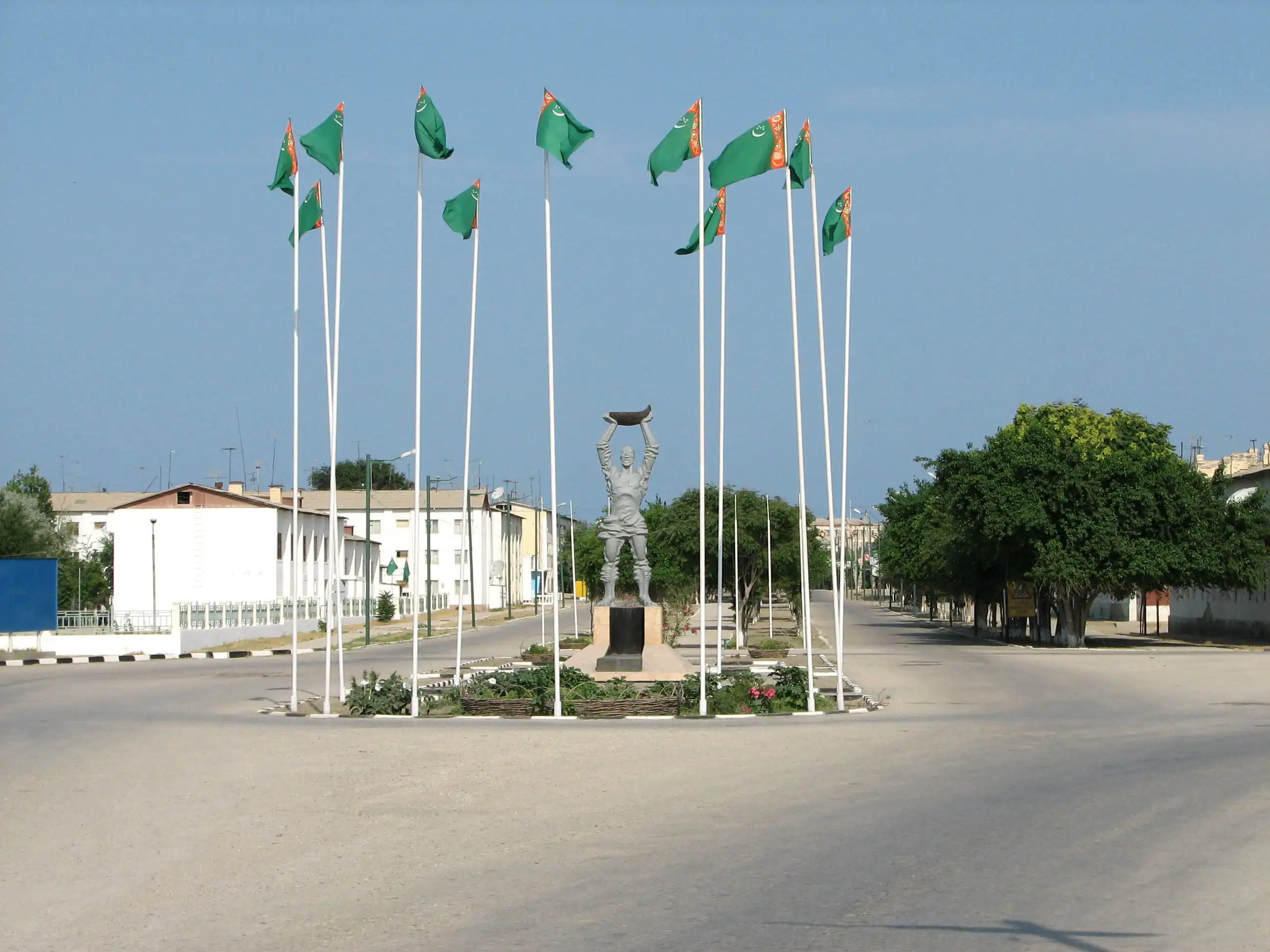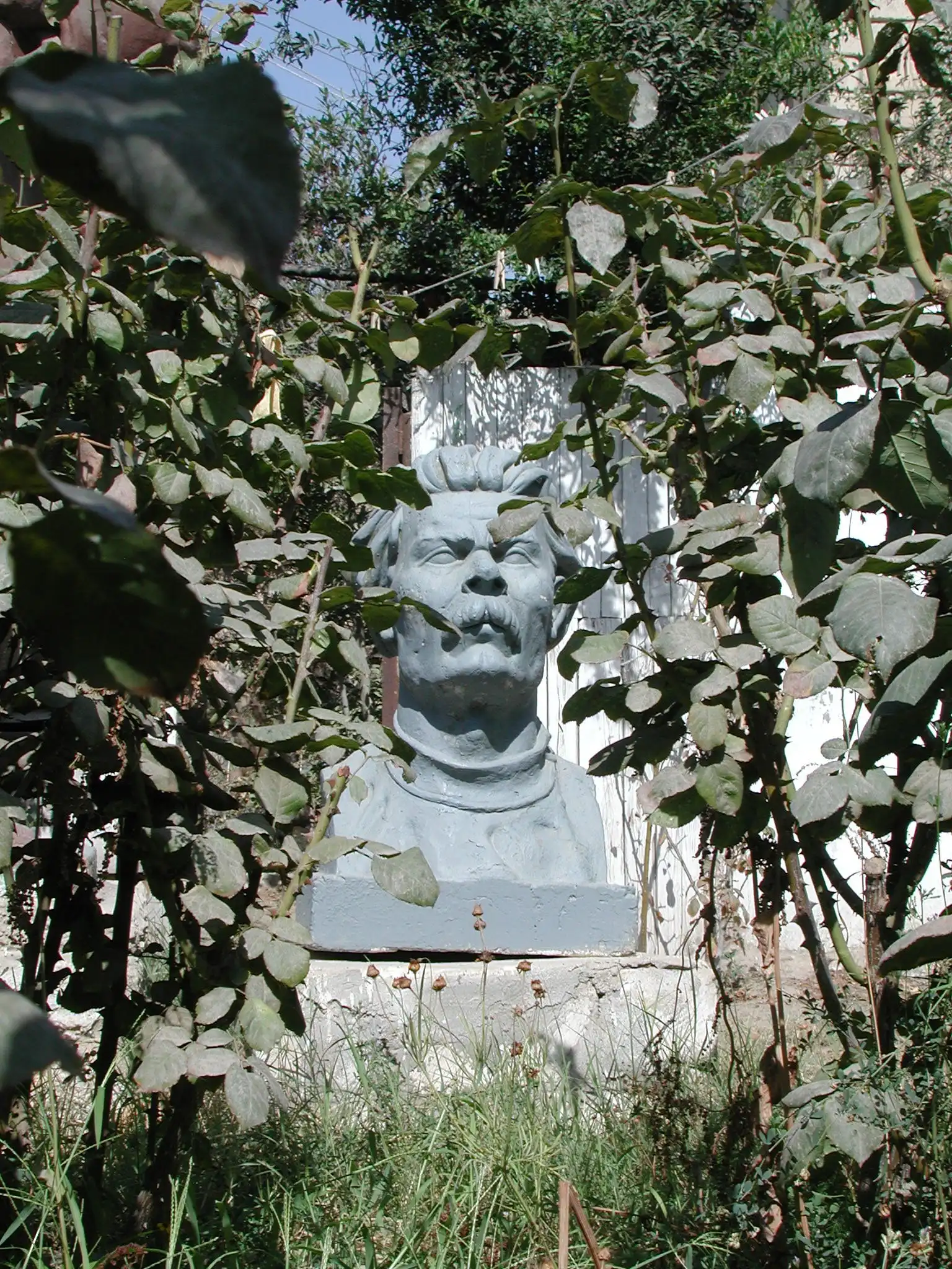 В центе на площади стоит памятник Туркменбаши – первому президенту Независимого Туркменистана. Раньше там стоял дедушка Ленин, но когда власть поменялась, сменили и памятник, поставленный при жизни. Транспорту было запрещено пересекать площадь из уважения к памятнику. А вот прошлые памятники приютил у себя один местный житель…