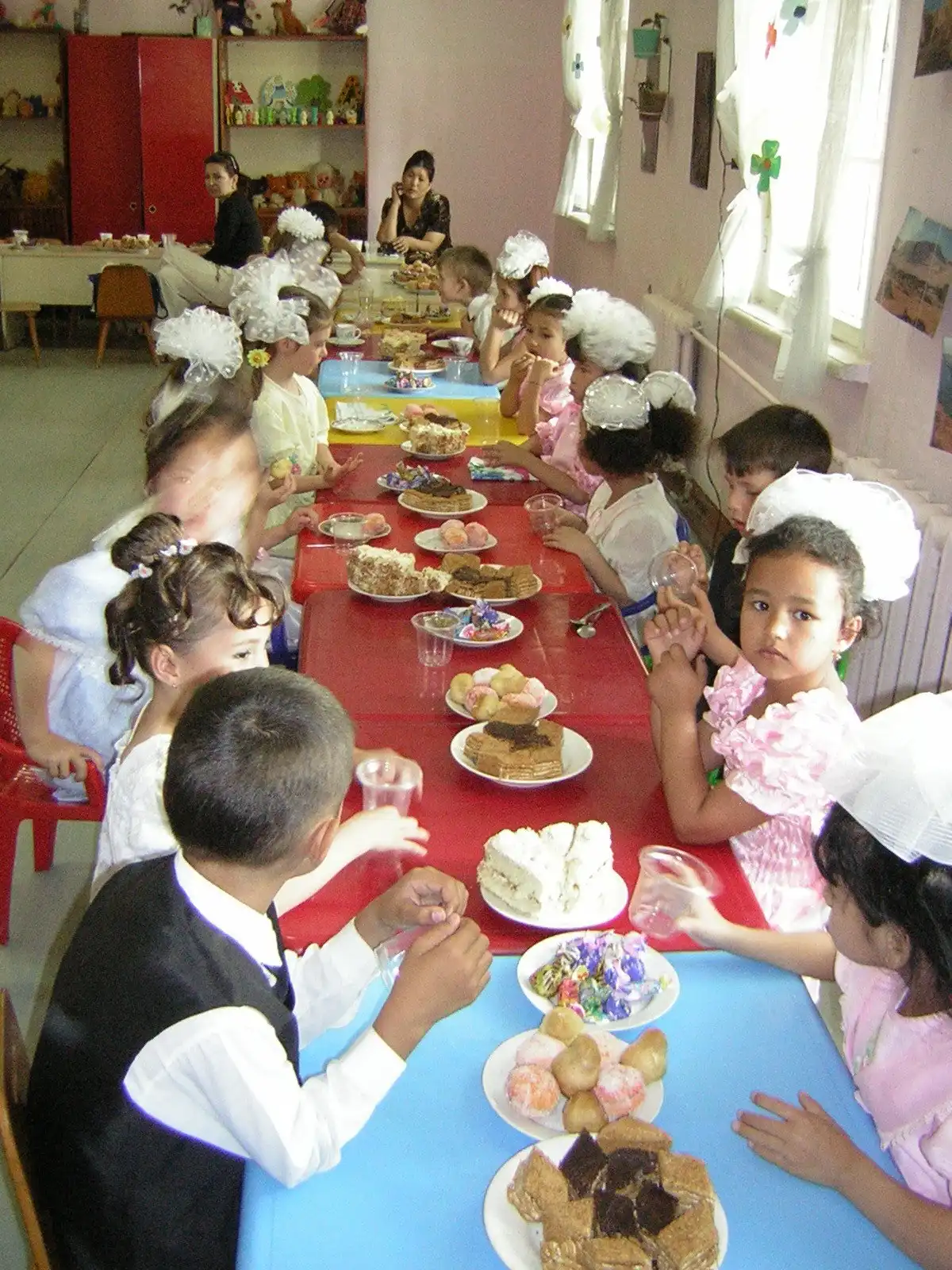 Как вы уже заметили, богатств на Челекене много. Но главное богатство местных жителей – дети. Детей здесь очень любят и семьи обычно многодетные с минимум тремя детьми… до одиннадцати… Так что давайте посмотрим на детей в детском саду…