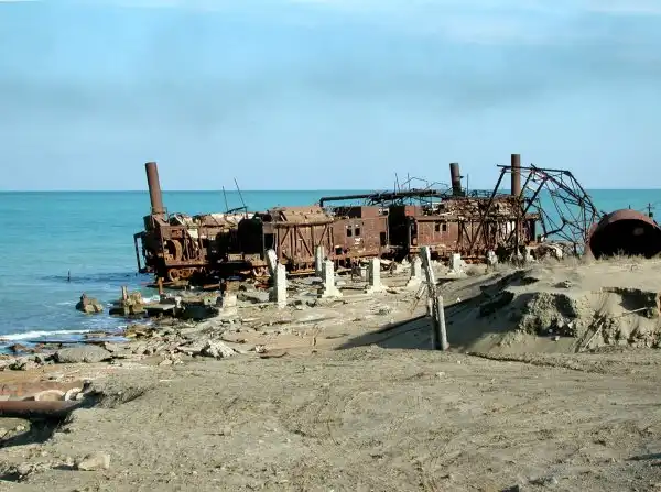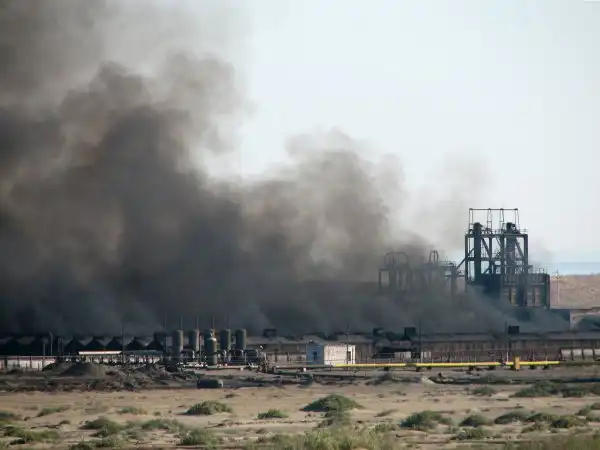 Ещё одна и последняя достопримечательность Челекена – сажевый завод. Шлейф дыма от производства сажи доходил до Ирана.