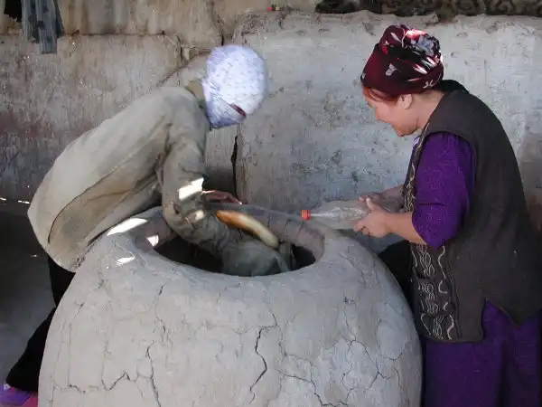 Теперь давайте посмотрим, как пекут хлеб в Челекене по-туркменски, в тандыре. Тандыр-чурек получается. Вкуснота неимоверная – тёплый тандыр-чурек…