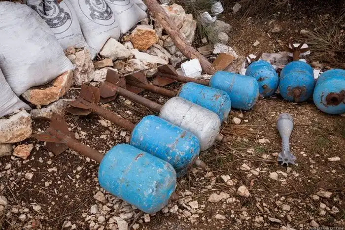 Самодельные боеприпасы в корпусах от газовых баллонов с аммоналом внутри.