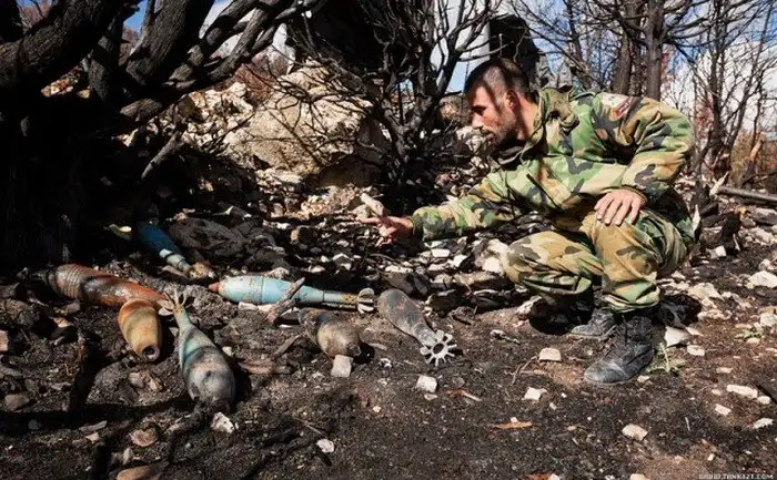 При кажущейся несуразности такого оружия, от него по-настоящему умирают люди. Этому бойцу повезло, прямо перед ним взорвался подобный боеприпас, а он отделался контузией и осколочными ранениями.