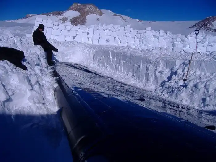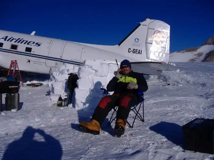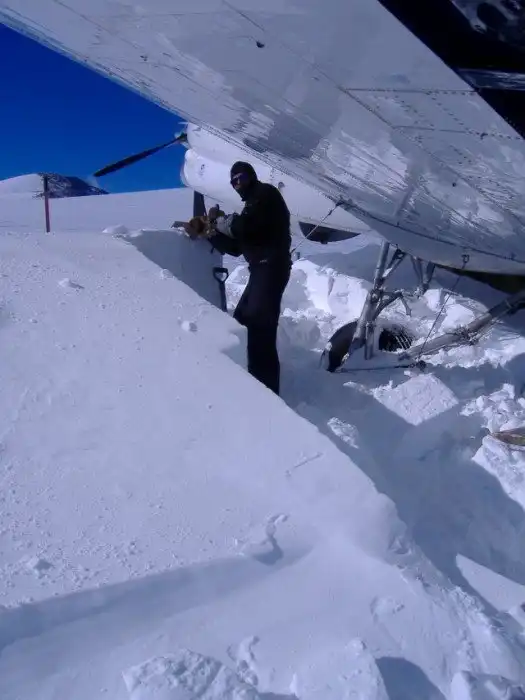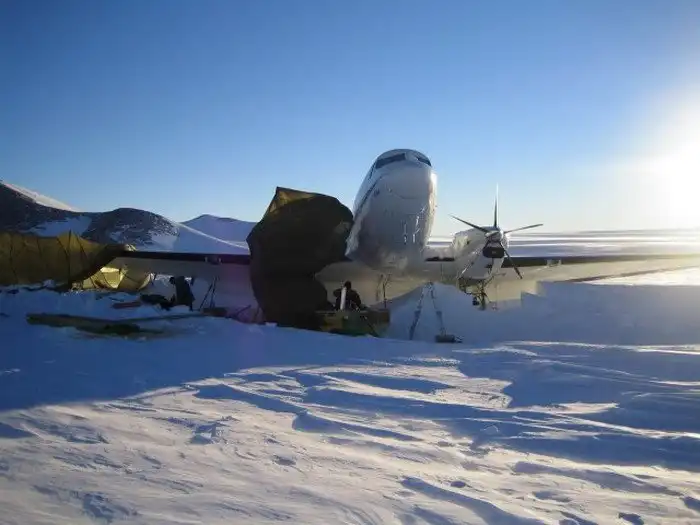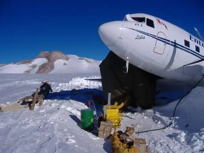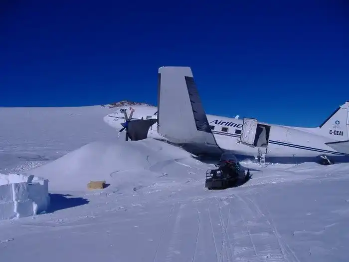 Небольшой канадский транспортный самолет Basler BT-67, доставляющий продовольствие и оборудование международным экспедициям на Антарктиде, во время приземления повредил стойку шасси о ледяные торосы и нуждался в ремонте. Ремонт решено было провести собственными силами. Трое человек в течение 8 дней ставили самолет «на ноги» и сняли интересный фотоотчет о своей работе.