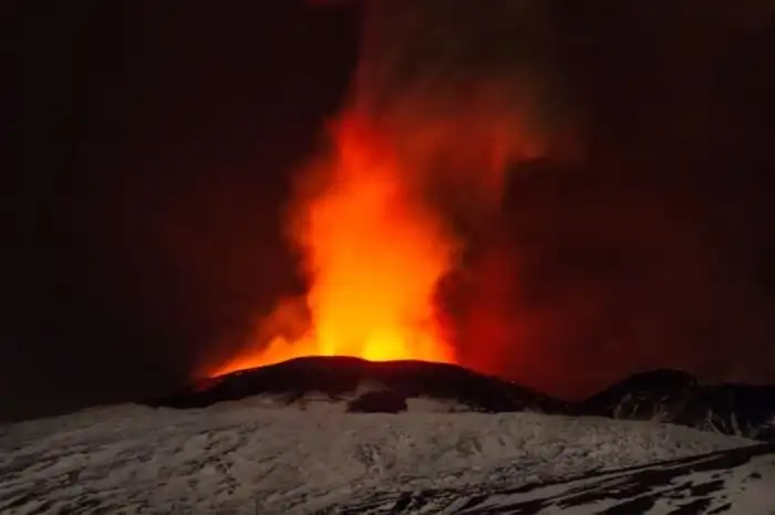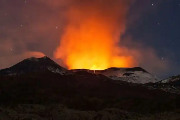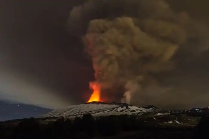 Известный во всем мире стратовулкан Этна, который находится на востоке Сицилии, постоянно проявляет активность, и в очередной раз он решил напомнить о себе 3 декабря 2015 года. Вулкан выбросил дым, а затем и лаву. Все это происходило на глазах у изумленных людей, которые тут же наполнили интернет эффектными снимками.
