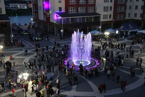 Генератор пропаганды в Краснодаре. Как видно он притянул к себе несколько десятков одураченных людей, они стали счастливыми и даже не замечают, что вокруг них стоят разваливающиеся дома, а под ногами разбитая тротуарная плитка, ямы и грязь по колено.