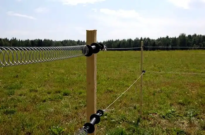 Забора в привычном понимании, из какого-то сплошного материала там нет, да и не нужен он там такой. Если присмотреться, видны столбики, которые обычно ставят для забора. Зачем они там, если забора нет? Все дело в том, что территорию для выпаса баранов, овец, и подобного скота огораживают электроизгородью. Между этими столбиками протянута леска, на которой закреплен тонкий провод, или иногда без лески, если провода не жалко, и он выдержит. По проводу идёт высокое напряжение, но с малым током. Если животное коснется, получит ощутимый (но не смертельный) удар током. Конечно, с такого расстояния леску и провод невидно. Потому то и кажется, что там ничего нет.