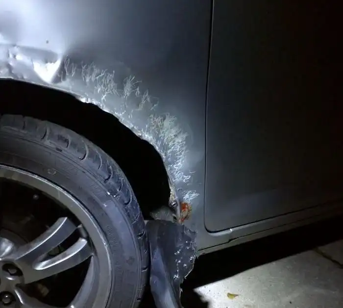 Автомобиль марки Scion подвергся нападению собак, которые, по версии экспертов страховой компании, могли покусать его, пытаясь достать кошку, спрятавшуюся в моторном отсеке. В течение двух часов, когда машина осталась без присмотра хозяина, животные оставили вмятины и царапины на крыльях, а также порвали пластиковые подкрылки.